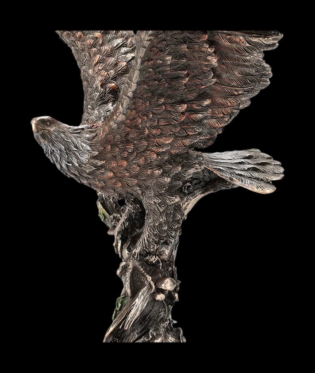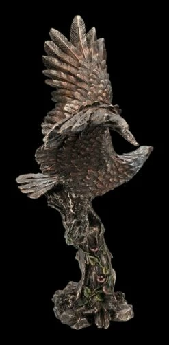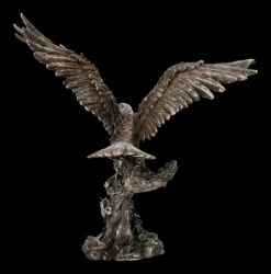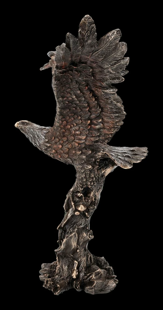 Weit spreizt der prächtige Adler seine Schwingen und blickt aufmerksam um sich. Ist er gerade auf dem hohen abgestorbenen Ast gelandet, oder will er abheben? Der majestätische Adler mit den gespreizten Flügeln stammt aus der Studio Collection aus dem Hause Veronese. Er ist fantastisch detailreich aus edel bronziertem und zurückhaltend coloriertem Kunststein (Polyresin) gefertigt. Eine herrliche Skulptur, die mit der Höhe von 19 cm, der Breite von 19 cm und der Tiefe von 8,5 cm großen Eindruck hinterlässt. Für jeden, der Adler für ihre Freiheit in den Lüften und ihre Eleganz beim Fliegen bewundert, ist diese herrliche Figur ein perfektes Geschenk.