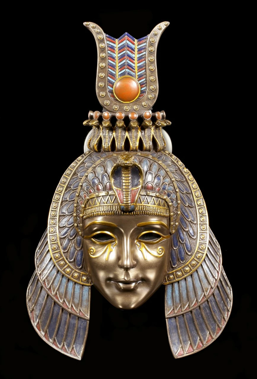 Diese Maske von der schönen ägyptischen Königin ist eine Hommage an die geheimnisvolle und sagenumwobene Kleopatra und erinnert an ihre Herrschaft als Pharaonin und an ihre schicksalsträchtige Liebesbeziehung. Die Maske stammt vom bekannten Hersteller Veronese und wurde mit viel Liebe zum Detail ausgearbeitet.