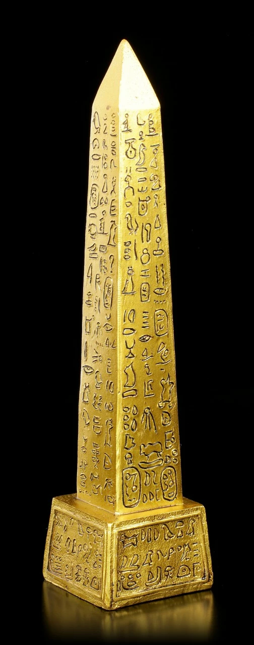 Im Alten Ägypten standen Obelisken für steingewordene Strahlen des Sonnengottes Ra. Sie galten als Verbindung zwischen dem der Menschenwelt und der Götterwelt. Das Gold soll den Glanz der Sonne und so die Macht des Sonnengottes wiederspiegeln. Ihr Schattenumlauf wies auf die tägliche Umfahrt des Re auf der Sonnenbarke von Osten nach Westen hin.