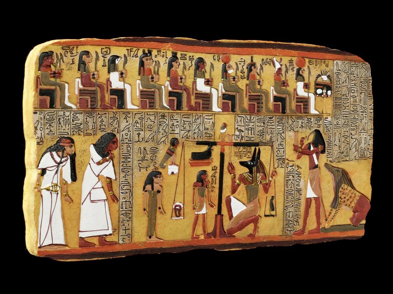 Diese umwerfende, detailgetreue Darstellung von ägyptischen Hieroglyphen ist das ideale Geschenk für einen Ägypten Begeisterten. Das handbemalte Wandrelief aus Kunststein (Polyresin) zeigt die Scales of Judgement – das wiegen der Seele nach dem Tode. Verwandeln Sie Ihr Wohnzimmer, Ihren Flur in eine ägyptische Grabkammer.