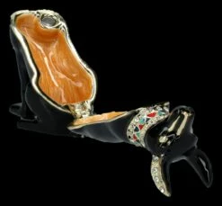 Anubis gehörte im Alten Ägypten zu den wichtigsten Gottheiten, denn er war für die Totenriten verantwortlich. Diese elegante, 7 cm hohe, 3 cm breite und 5,5 cm tiefe Schmuckdose aus Kunststein (Polyresin) zeigt Anubis als schwarzen Schakal, wie man ihn von zahlreichen Abbildungen kennt. Die kunstvoll von Hand bemalte und reichlich mit Schmucksteinen verzierte Anubis-Büste hat einen Magnetverschluss und lässt sich öffnen. Sie ist ein perfektes Geschenk für alle, die sich für die Götterwelt im Alten Ägypten interessieren. Die Dekoration ist nicht inklusive.