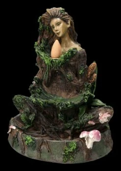 Höchst romantisch – wie eine wunderschöne Jugendstil-Figur – ist dieser faszinierende Backflow Räucherhalter mit der Baum Ent Lady. Aufmerksam beobachtet die mystische Lady den Weg des magischen Rauches, wenn der Backflow Räucherkegel, den sie in den Händen hält, angezündet wird. Der 19,5 cm hohe, 16,5 cm breite und 13 cm tiefe Backflow Räucherhalter wurde außerordentlich detailreich aus Kunststein (Polyresin) gefertigt und liebevoll handbemalt. Dieser fantastische Backflow Räucherhalter mit der mystischen Baum Ent Lady ist nicht nur sehr dekorativ, er ist auch ein wunderbares Geschenk für alle Freunde magischer Fabelwesen. Er ist nur für Backflow Räucherkegel geeignet, von denen einer beigefügt ist. Weitere Räucherkegel finden Sie in unserem Shop. Bitte beachten Sie unsere Sicherheitshinweise zu unseren Backflow Räucherhaltern.