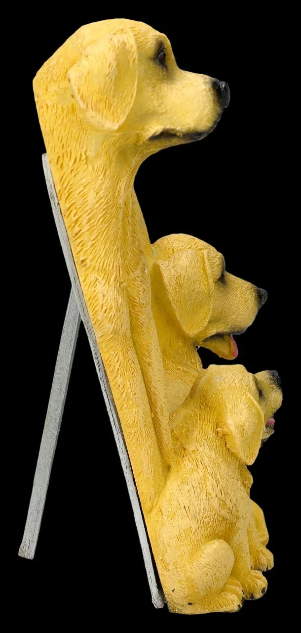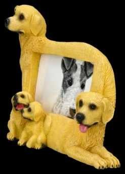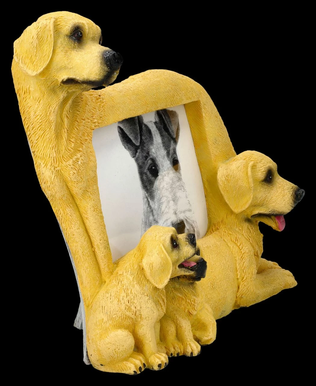 Die Labrador Hundefamilie steht gerne bereit, um als Rahmen fĂŒr ein besonderes Bild zu dienen. Alle wirken sehr ausgeglichen und zufrieden. Jeder Hundefreund wird schon vom treuen Hundeblick, aber besonders von den beiden frechen Welpen am vorderen Rand, begeistert sein. Der faszinierende Bilderrahmen mit der Labrador Hundefamilie ist fĂŒr alle Hundefreunde ein perfektes Geschenk. Er ist 15 cm hoch, 20 cm breit und 6 cm tief und zum Stellen. Der hĂŒbsche Bilderrahmen aus liebevoll handbemaltem Kunststein (Polyresin) bietet Platz fĂŒr ein 10 x 8 cm groĂes Bild oder Foto.Â