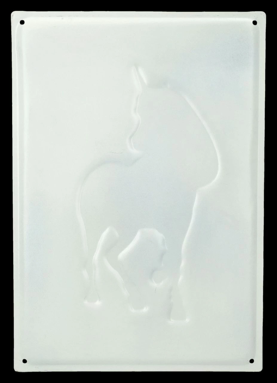 Nur wer bereit dazu ist, kann es mit viel Glück in den tiefen und geheimnisvollen Wäldern sehen – das letzte Einhorn. Wie ein Lichtstrahl kann es auftauchen und verschwindet auch so schnell wieder aus den Blicken. Dieses herrliche Motiv mit dem letzten Einhorn auf dem faszinierenden geprägten Metallschild ist zum Hängen. Es ist 40 cm hoch und 28 cm breit und hat eine Relief-Oberfläche, die bezaubernde Lichtakzente setzt. Mit diesem zauberhaften Blechschild können auch Sie in die märchenhafte Welt der Elfen, Feen und Einhörner eintauchen. Es ist – eventuell gemeinsam mit einem der anderen faszinierenden Blechschilder aus unserem Shop – ein wahres Schmuckstück für jede Wand und damit ein perfektes Geschenk.