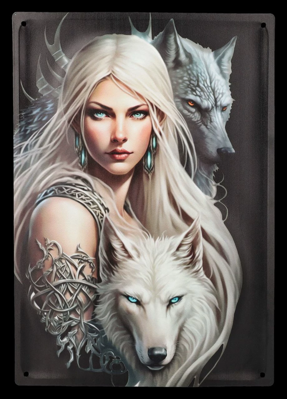 Die Magie der Wildnis: „Hüterin der Wölfe“ auf Blechschild