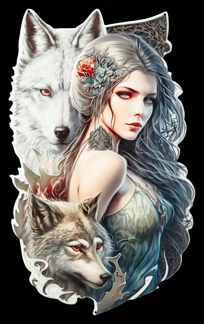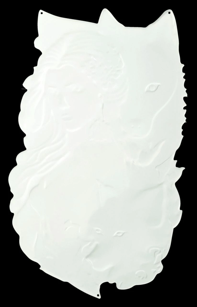 Seit der Geburt der Prinzessin gehörten Wölfe zu ihren treuen Begleitern. Mit ihnen streifte sie schon in ihrer Kindheit mutig durch die Wälder um das Königsschloss. Nun ist sie erwachsen geworden und wurde auf diesem kunstvollen geprägten Metallschild gemeinsam mit ihren treuen Begleitern, den prächtigen Wölfen, abgebildet. Das wunderschöne Blechschild zum Hängen ist 48 cm hoch und 30 cm breit. Es hat eine Relief-Oberfläche, die dem Schild faszinierende Akzente gibt. Das fantasievolle Motiv mit der Wolfs Prinzessin auf diesem Metallschild ist – vielleicht gleich gemeinsam mit einem der anderen faszinierenden Schildern aus unserem Shop – ein wahres Schmuckstück für jede Wand und damit auch für Sammler ein perfektes Geschenk
