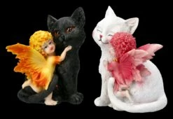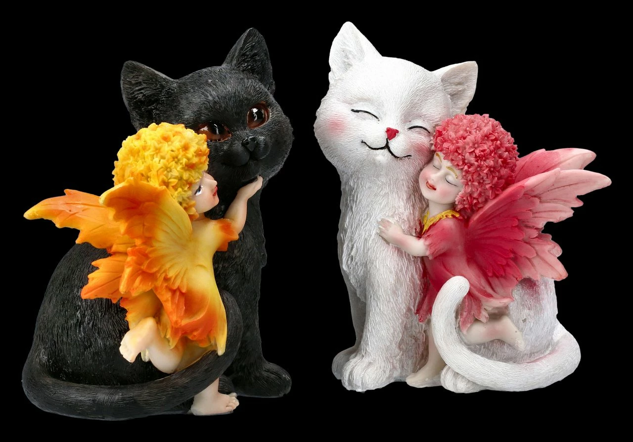 Was ist jetzt niedlicher? Die beiden süßen kleinen Elfenkinder, die begeistert den beiden Katzen das Fell kraulen, oder die beiden hübschen Fellnasen, die sich das genießerisch gefallen lassen? Die absolut herzigen Blumenfeen mit den süßen Katzen sind sehr detailreich aus handbemaltem Kunststein (Polyresin) gefertigt. Sie sind je 14 cm hoch, je 10,5 cm breit und je 9 cm tief und das perfekte Geschenk für alle Feen und Katzenfreunde. Natürlich können sie auch gleich mit der Schwester oder der besten Freundin geteilt werden.