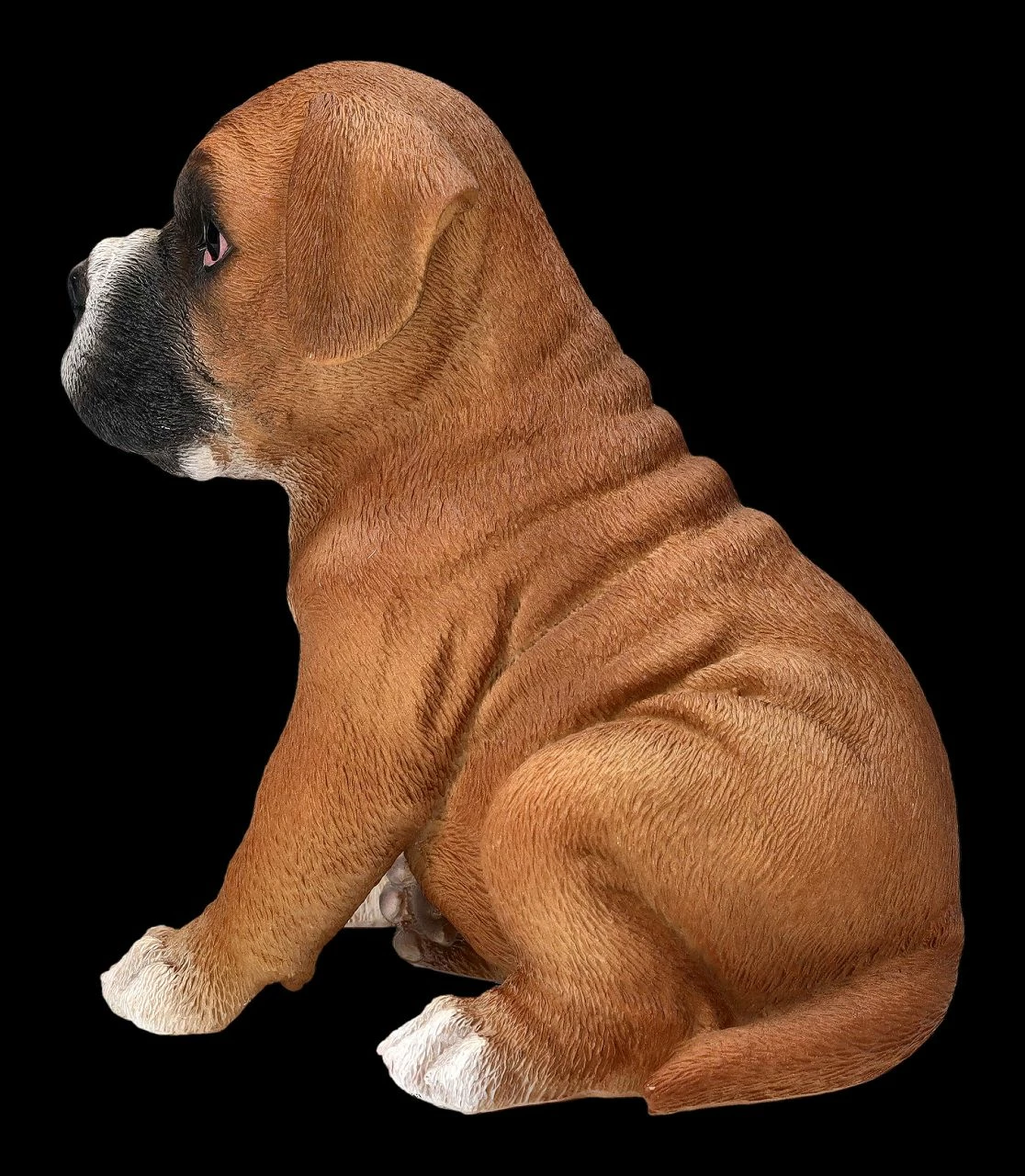 Dieser außerordentlich realistisch und detailreich gefertigten Figur eines Boxer Welpen von Hotant kann sicher kein Freund dieser Hunderasse widerstehen. Der.niedliche Boxer-Welpe ist mit seinem unschuldigen Blick doch einfach zum Knuddeln. Boxer Hunde sind durch ihr ruhiges und ausgeglichenes Wesen sind richtige Familienhunde. Sie sind aber auch hervorragende Rettungshunde, Begleit- oder Sporthunde und lieben Kinder über alles. Die 17 cm hohe, 11 cm breite und 14 cm tiefe Welpen-Figur aus hochwertigem Kunststein (Polyresin) wurde liebevoll handbemalt. Die Figur von Hotant ist nicht nur für jeden Verein oder Zuchtverband eine bezaubernde Deko, sondern auch alsTrophäe für Züchter und Wetttbewerbe perfekt geeignet. Der niedliche Welpe ist aber auch ein tolles Geschenk für alle Boxer-Freunde.