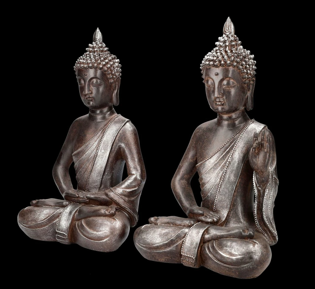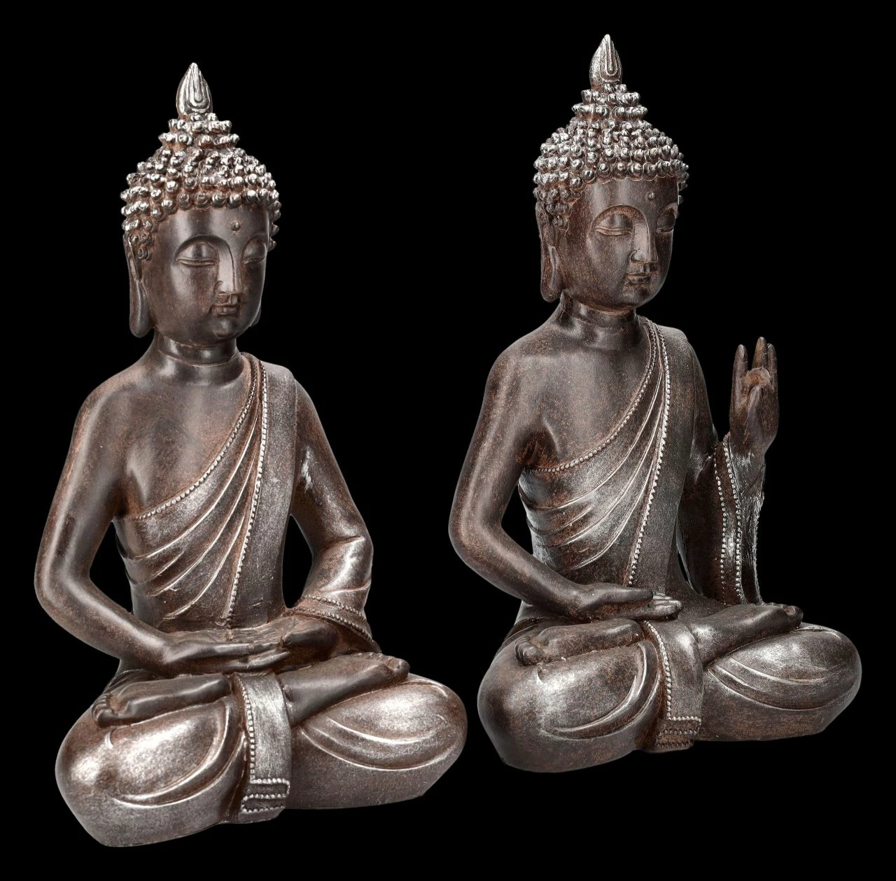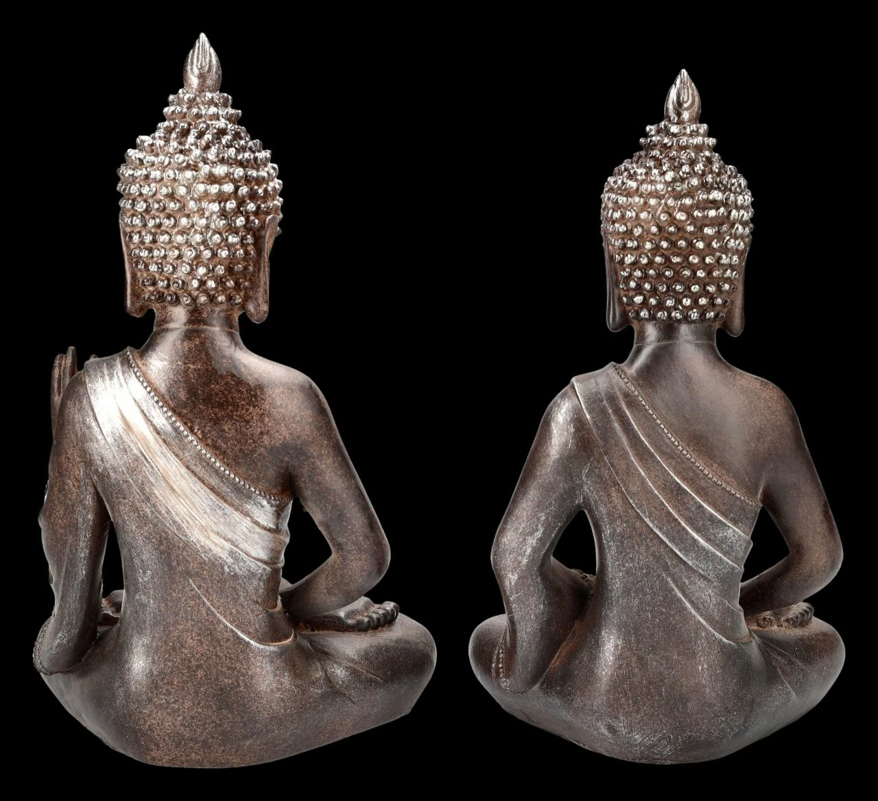 Die beiden unterschiedlichen meditierenden Buddha-Figuren wurden sorgfältig aus Kunststein (Polyresin) gefertigt und wirken durch die fein in Brauntönen gehaltene Handbemalung sehr zurückhaltend und edel. Die beiden edlen Buddha-Figuren im 2er Set sind je 31 cm hoch, je 18,5 cm breit und je 11,5 cm tief und nicht nur ein Blickfang, sondern auch ein repräsentables Accessoire für jedes Studio. Die beiden Buddha Figuren geben aber natürlich auch Ihrem privaten Bereich ein wunderbar asiatisches Feeling und unterstützen Sie perfekt bei Ihrer Meditation,