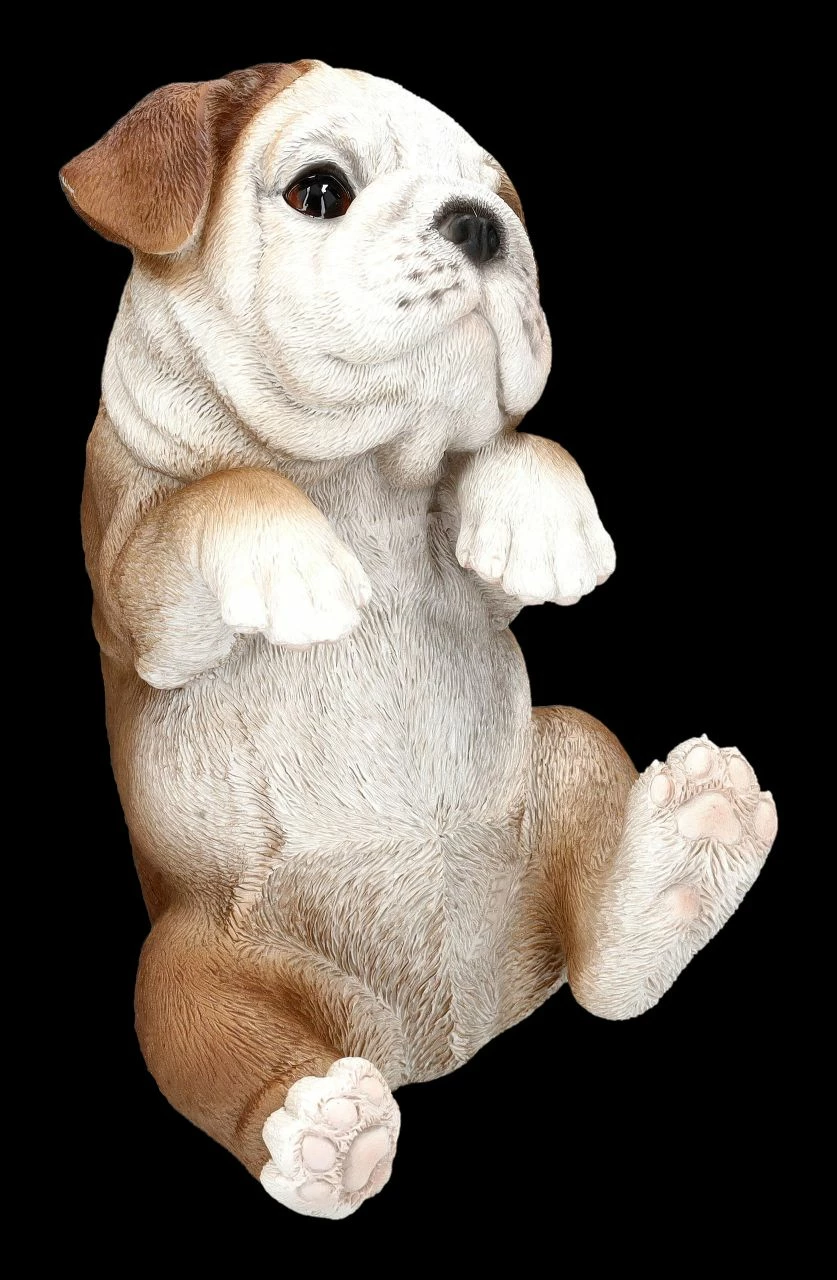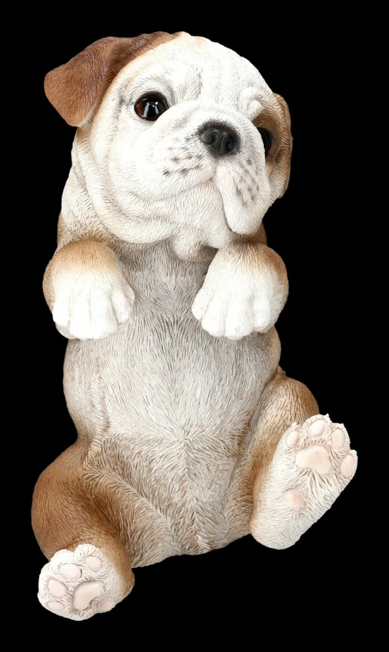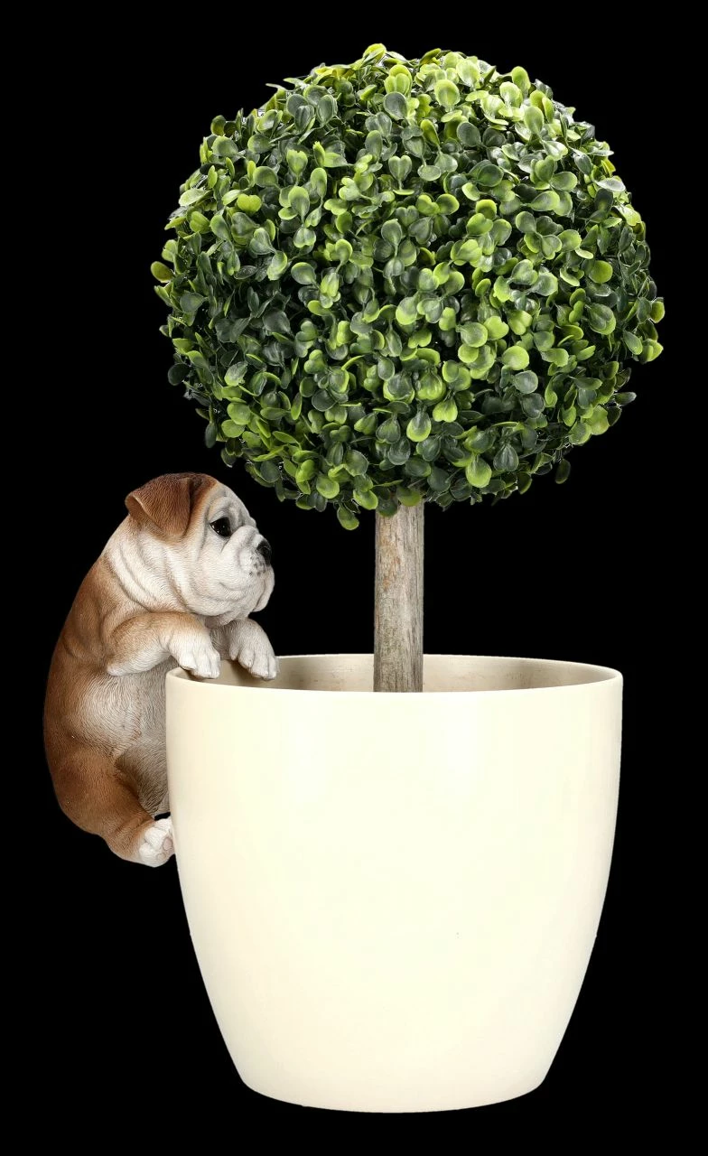 Diesem Bulldoggen-Welpen darf man wenigstens alles durchgehen lassen, auch dass er versucht in den Blumentopf zu gelangen, um darin zu wühlen… Der abenteuerlustige Welpe wurde außerordentlich realistisch und detailreich von Hotant als Blumentopf-Hänger gefertigt. Er wird mit Sicherheit jeden begeistern, der ihn an einem Blumentopf hängend entdeckt. Der 19 cm hohe, 12 cm breite und 12 cm tiefe Bulldoggen-Welpe wurde aus hochwertigem Kunststein (Polyresin) gefertigt und liebevoll handbemalt. Er ist eine wirklich witzige Deko und auch ein perfektes Geschenk für alle Freunde dieser Hunderasse. Die Lieferung erfolgt ohne Dekoration.