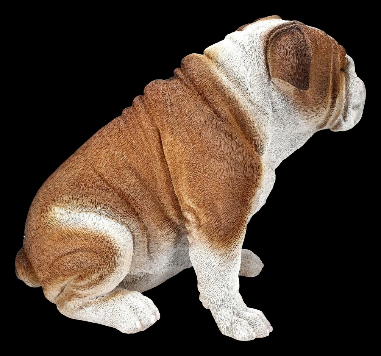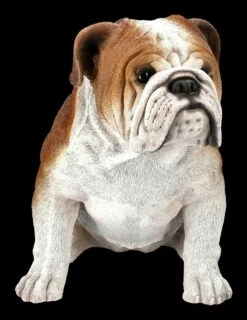 Realistisch und detailreich gestaltet ist diese sitzende Bulldoggen-Figur von Hotant. Der griesgrämige Gesichtsausdruck kommt dabei wunderbar zur Geltung. Jeder, der diese Bulldogge sieht, wird sie vermutlich streicheln wollen, da diese Hunde – auch wenn man ihnen das nicht so ohne weiteres ansieht – wegen ihres fröhlichen und verspielten Wesen sehr beliebt sind. Bulldoggen sind eigentlich regelrechte Kampfschmuser und suchen sich gerne ein Bett oder Sofa als Schlafplatz aus. Diese Gefahr besteht bei dieser Bulldogge allerdings nicht, auch wenn sie absolut realistisch aussieht. Die fantastisch handbemalte und sorgfältig aus hochwertigem Kunststein (Polyresin) gefertigte Bulldoggen-Figur ist mit der Höhe von 37 cm, der Breite von 28 cm und der Tiefe von 46 cm einfach perfekt einem echten Hund nachempfunden. Die Bulldoggen-Figur von Hotant ist eine tolle Deko, die am besten gleich am Eingang aufgestellt werden sollte. Sie ist aber auch eine hochwertige und fantastische Trophäe für jeden Verein oder Zuchtverband und natürlich auch ein perfektes Geschenk für alle Hundefreunde. Falls aber eines Tages der treue Begleiter seinen Menschen zurück lässt, wird diese Figur neben der Urne aufgestellt immer an ihn erinnern.