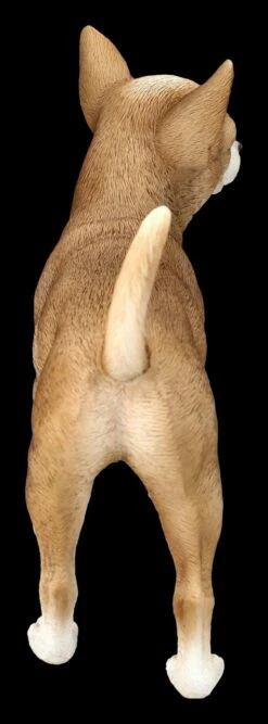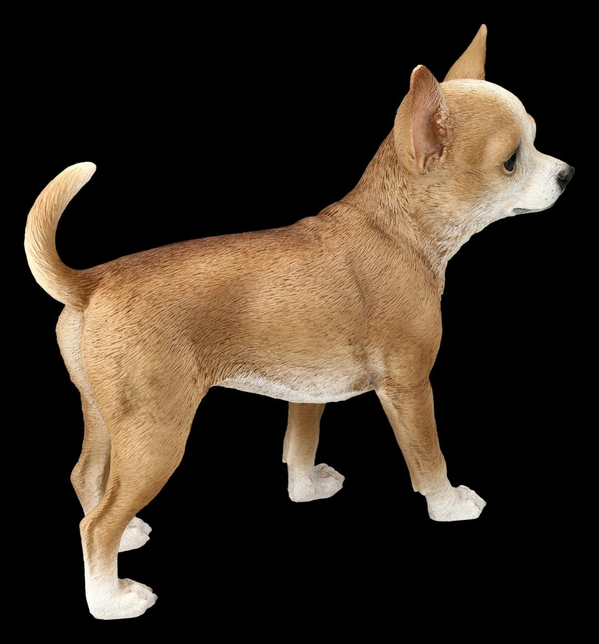 Einfach niedlich ist dieser kleine realistisch und detailreich gestaltete Chihuahua von Hotant. Alleine schon die groĂen Ohren der kleinsten Hunderasse der Welt sind absolut perfekt nachempfunden. Malereien weisen ĂŒbrigens darauf hin, dass die niedlichen kleinen Hunde schon im 8. Jahrhundert in der mexikanischen Provinz Chihuahua, die ihnen den Namen verliehen hat, lebten und dass Priester der Azteken sie ab dem 14. Jhdt. als ‚FĂŒhrer toter Seelen‘ bezeichneten. Wie man aus Wandmalereien inzwischen weiĂ, liebten es vor allem aztekische Prinzessinnen mit diesen kleinen niedlichen Hunden zu spielen. Ab dem 19. Jhdt. ist aufgefallen, wie sehr diese kleinen Hunde bei Touristen beliebt sind und so haben Mexikaner mit der Zucht der lebhaften und temperamentvollen Rasse begonnen. Die 23,5 cm hohe, 25 cm breite und 10 cm tiefe Chihuaha-Figur ist einfach fantastisch aus hochwertigem Kunststein (Polyresin) gefertigt und mit viel Liebe handbemalt. Und im Gegensatz zum als eifersĂŒchtig und Ă€uĂerst mutig geltenden kleinen Hund wird dieser Chihuahua sich nicht mit gröĂeren Artgenossen anlegen. Die Figur von Hotant ist nicht nur eine tolle Deko, sie ist auch eine hochwertige und fantastische TrophĂ€e fĂŒr jeden ZĂŒchter, Verein oder Zuchtverband und natĂŒrlich auch ein perfektes Geschenk fĂŒr alle Hundefreunde.
