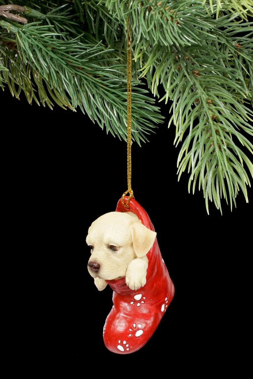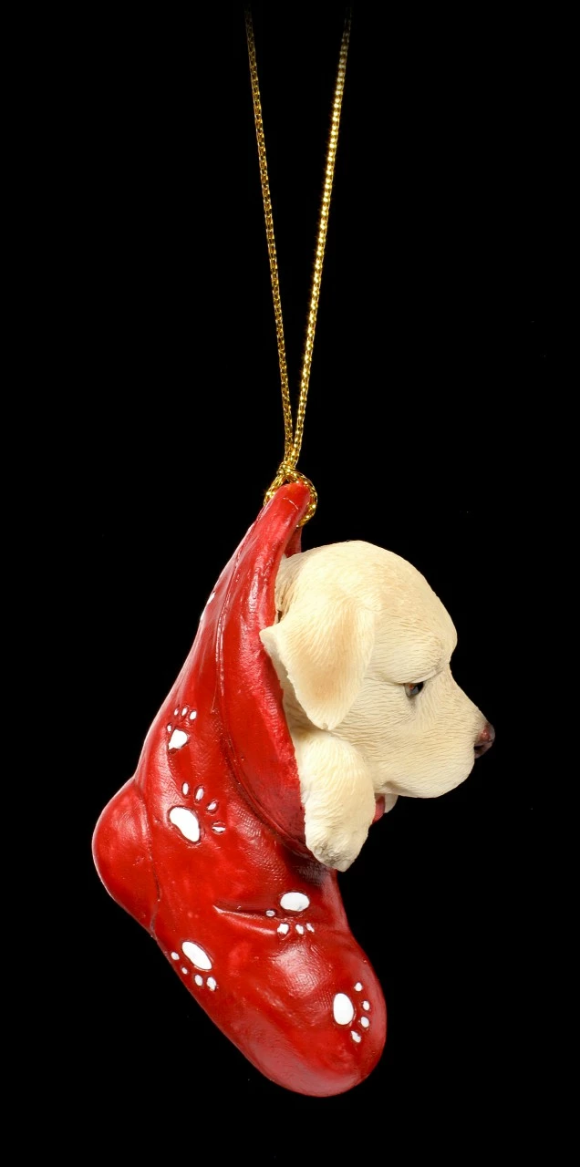 Machen Sie einem Labrador Liebhaber doch eine große Freude mit diesem super süßen Labrador Christbaum Anhänger. Der niedliche Welpe blickt aus unschuldigen Augen aus einem Weihnachtsstrumpf hervor. Dieser Anhänger wird zum Highlight an einem Weihnachtsbaum und schmückt natürlich auch jedes Geschenk.