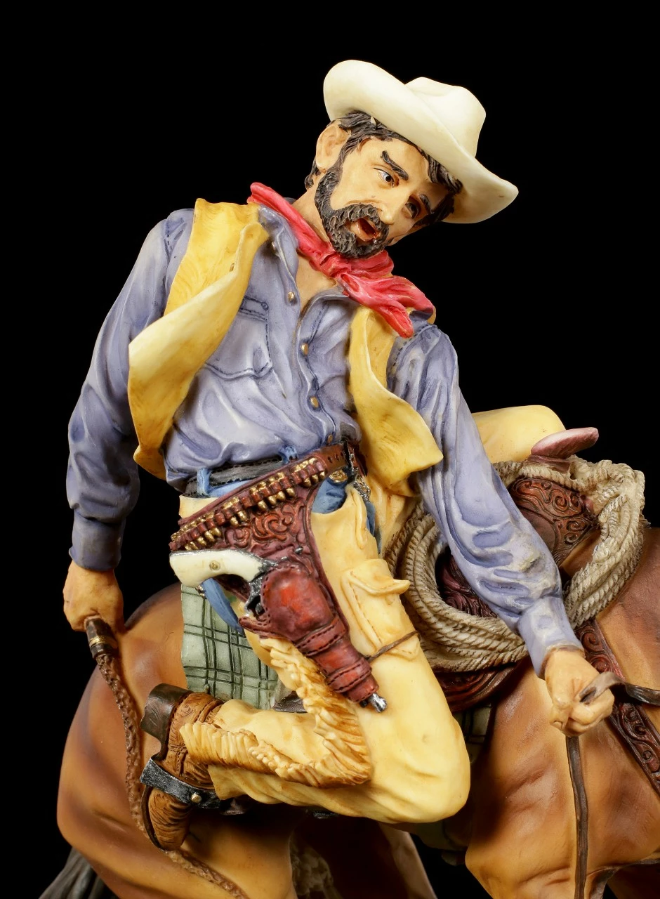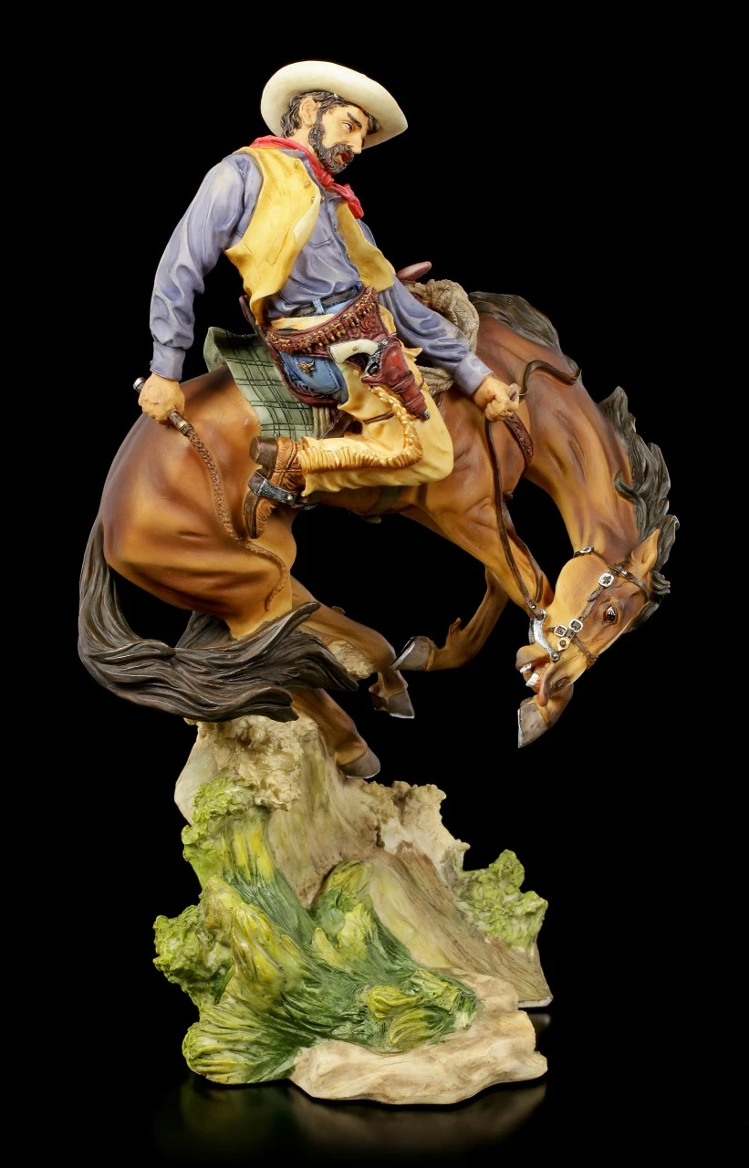 Die handbemalte Figur des Bronco Buster ist einer Skulptur aus Bronze nachempfunden, welche 1895 vom amerikanischen Künstler Frederic Remington urheberrechtlich geschützt wurde. Die wunderschöne und detailreiche Rodeo Figur aus Kunststein (Polyresin) ist aus der Serie Corrida de Totos aus dem Hause Veronese und für jeden Western Fan ein Must Have.