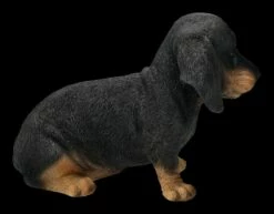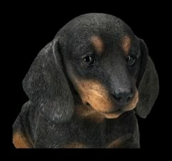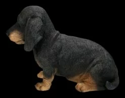 Den Ausdruck ‚Dackelblick‘ gibt es nicht umsonst, daher kann dem frechen und unschuldigen Blick dieser außerordentlich realistisch und detailreich gefertigten Figur eines Dackel Welpen von Hotant mit Sicherheit niemand widerstehen. Lange Zeit zählte der Dackel vor allem in Bayern zu den Lieblingshunden und wurde sogar als Maskottchen für die Olympiade in München ausgewählt. Aber Achtung: Der Dackel ist ein Jagdhund und zeigt wenig Respekt. Dackel haben kein Problem damit, sich auch mit größeren Tieren anzulegen und wie jeder Dackel-Freund weiß, werden sie ihr Revier laut kläffend verteidigen. Die 15 cm hohe, 10 cm breite und 20 cm tiefe Welpen-Figur eines Dackels wurde aus hochwertigem Kunststein (Polyresin) gefertigt und liebevoll handbemalt. Die Figur von Hotant ist nicht nur für jeden Verein oder Zuchtverband eine bezaubernde Deko, sondern auch ein perfektes Geschenk für alle Dackel-Freunde.