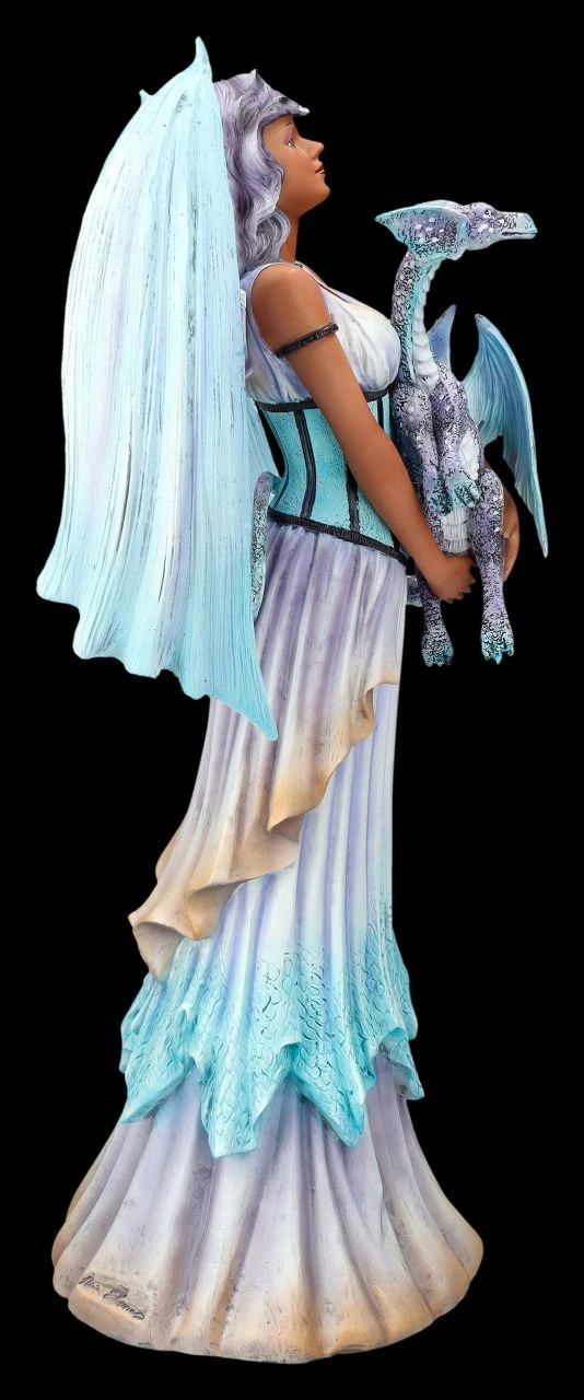 Aufrecht steht der stolze Engel da und hĂ€lt den ihm anvertrauten Drachen fĂŒrsorglich in den Armen. Doch die pastellfarbene Kleidung des schönen Engels soll nicht darĂŒber hinwegtĂ€uschen, dass es sich um einen dunklen Engel handelt, dem man mit Vorsicht begegnen sollte – das beweisen die fledermausartigen FlĂŒgel. Die Dark Angel Figur ‚Dragon Keeper‘ der beliebten und berĂŒhmten FantasykĂŒnstlerin Amy Brown ist detailreich aus liebevoll handbemaltem Kunststein (Polyresin) entstanden. Die FlĂŒgel des beeindruckenden, 42 cm hohen, 21 cm breiten und 17 cm tiefen dunklen Engels sind zum Stecken. Der faszinierende Engel mit dem Drachen ist nicht nur fĂŒr Sammler ein prĂ€chtiges Geschenk.