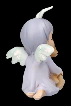Bewacht von seinem Schutzengelchen schläft das Bambi selig und beruhigt ein. Im Traum begegnet das kleine Reh dem Engelchen mit den blaßlila Haaren, das eigentlich wie ein kleines Häschen aussieht. Das 8,5 cm hohe, 8 cm breite und 6 cm tiefe putzige schlafende Engelchen mit dem Reh wurde aus liebevoll handbemaltem Kunststein (Polyresin) gefertigt. Gemeinsam mit den anderen Schutzengelchen aus unserem Shop ist es eine niedliche Frühlingsdekoration und ein süßes Geschenk für alle, die Engel lieben.