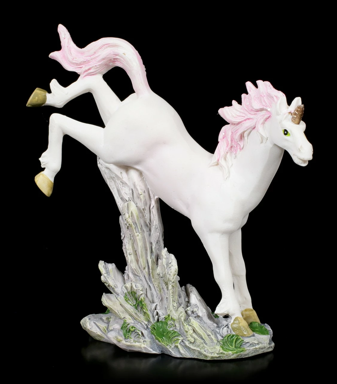 Voller Freude und Übermut streckt das glückliche Einhorn seine Hinterhufe in die Höhe. Das schöne detaillierte Einhorn ist ein liebevolles Geschenk an einen Einhorn Liebhaber.