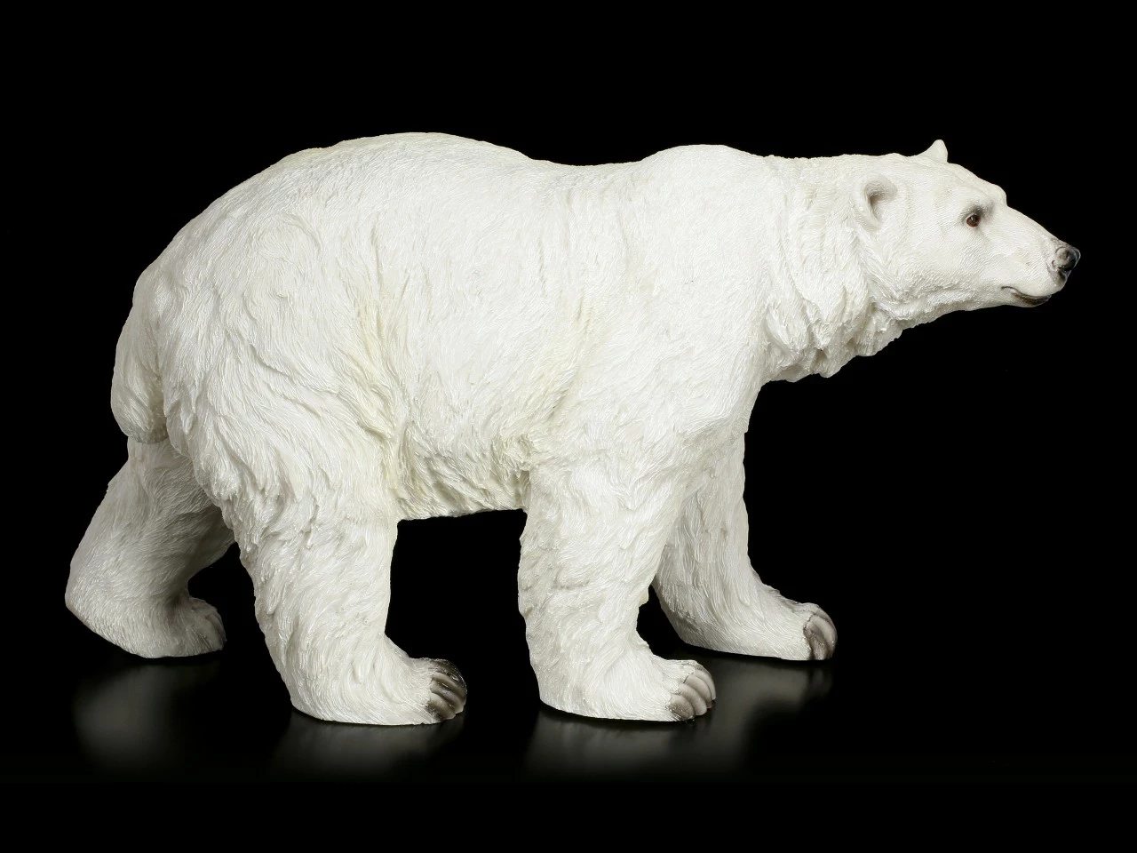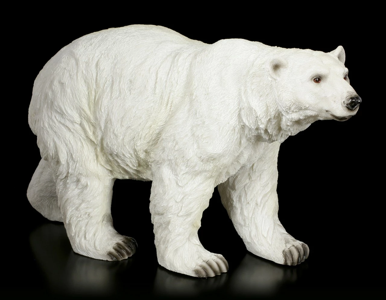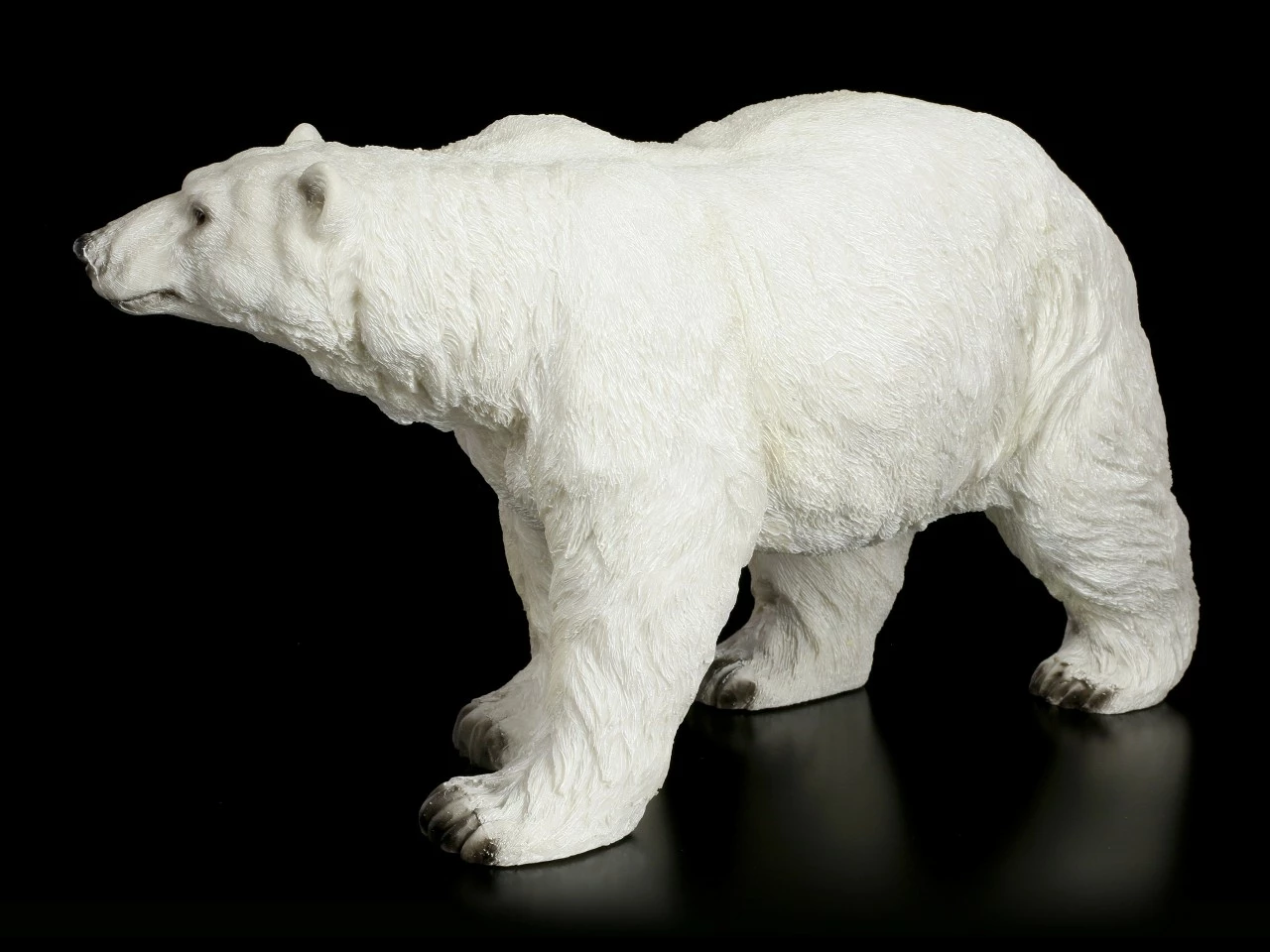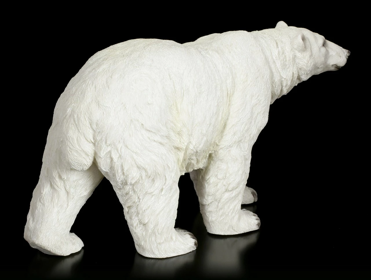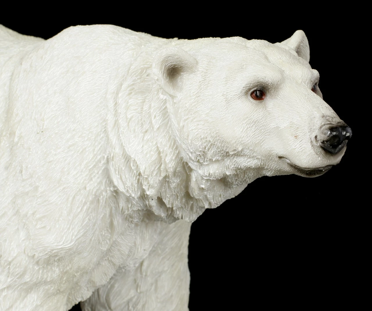 Der stattliche Eisbär schreitet bedächtig sein Revier ab. Er verteidigt es vor Eindringlingen und sollte ihm eine Beute begegnen, wird er seinen Jagdtrieb ausleben um sich und seine Jungen zu versorgen. Die handbemalte Kunststein Figur ist sehr detailgetreu gearbeitet und wird Sie begeistern.