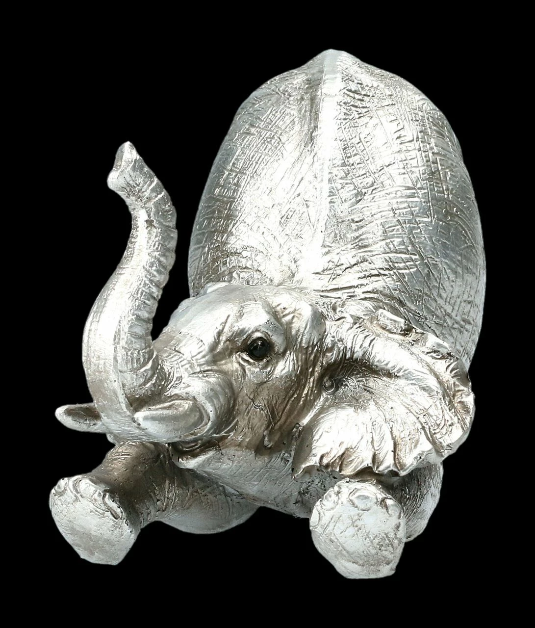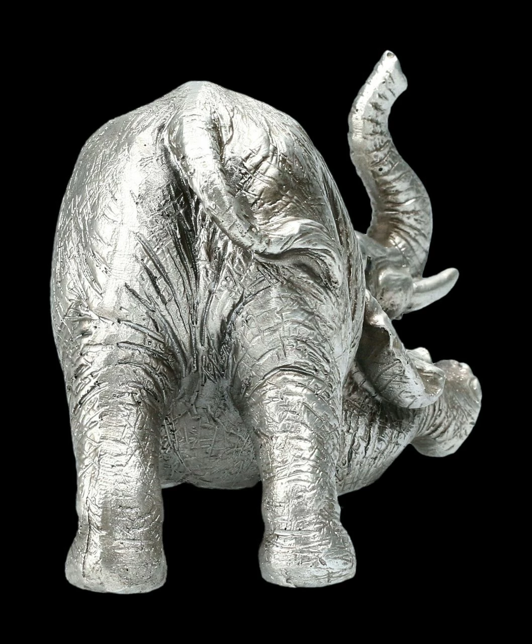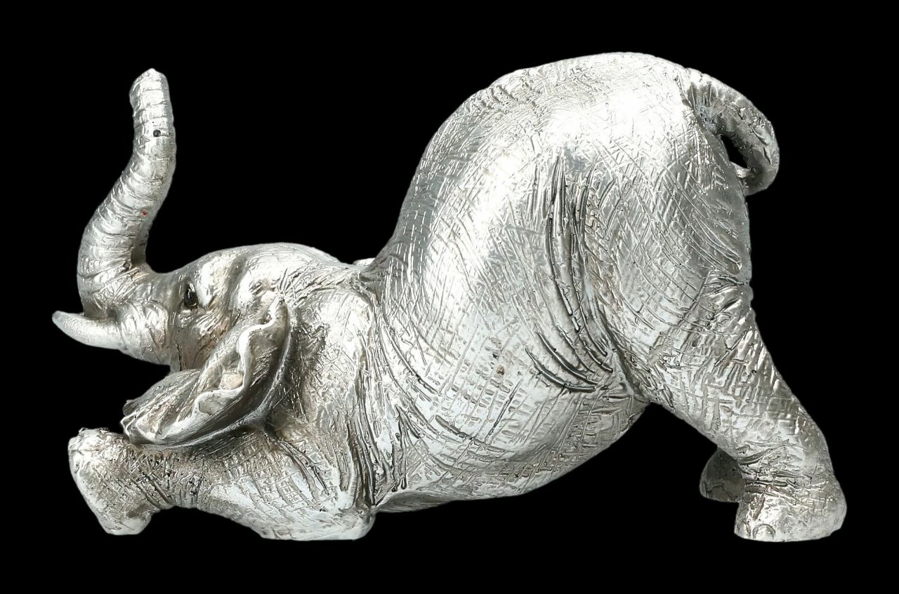 Auch Elefanten werden einmal müde und möchten sich dann ausruhen. Oder vielleicht auch zur Entspannung Yoga machen? Dass es dieserm Elefanten Freude macht, sich einfach mal zu entspannen, sieht man ihm deutlich an. Aus Kunststein (Polyresin) gefertigt, ist der Elefant im edlen, antik aussehenden Silber-Finish als Glücksbringer ein wunderbares Geschenk. Diese Elefantenfigur ist 9,0 cm hoch, 19,0 cm breit und 7,5 cm tief.