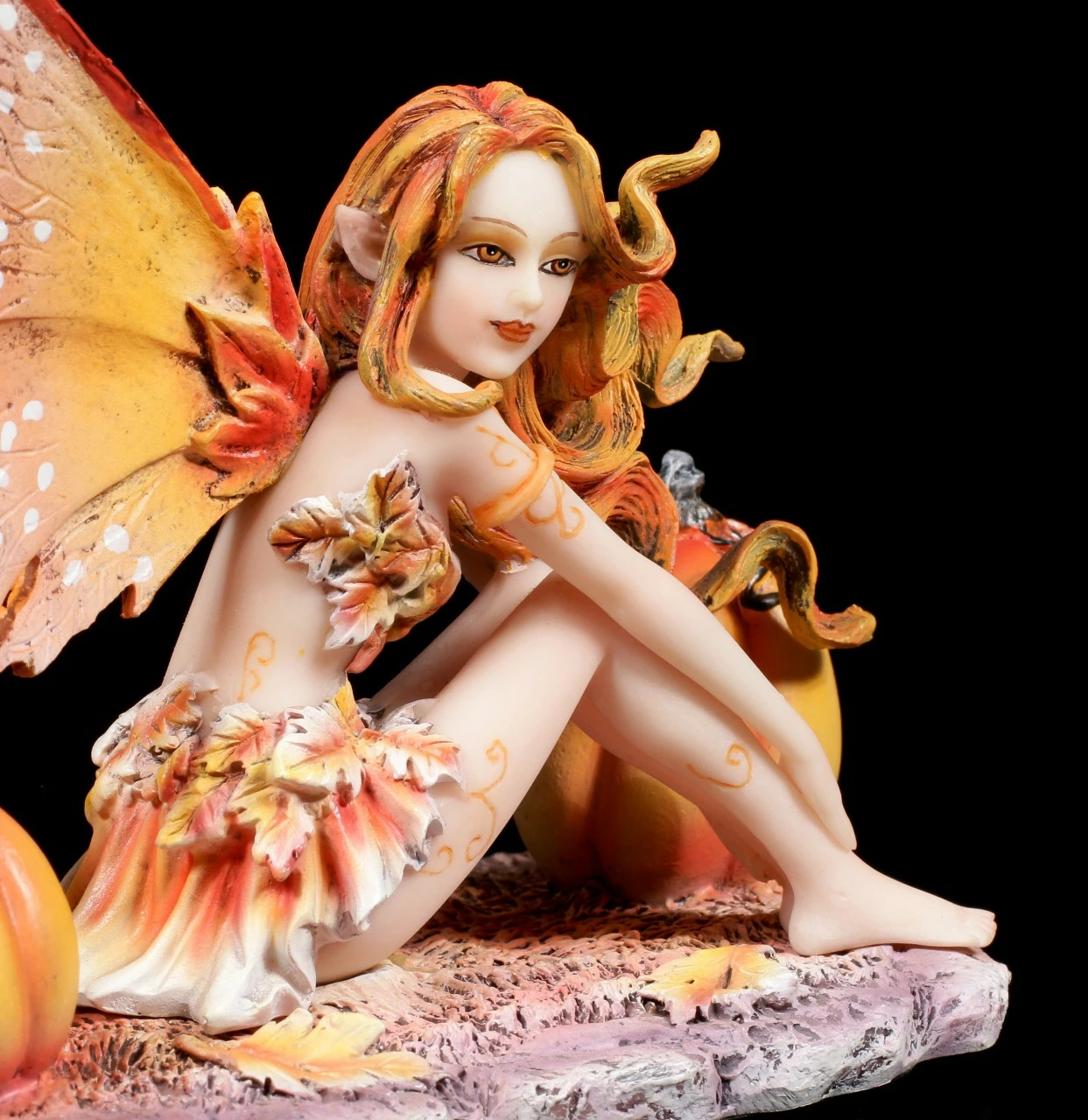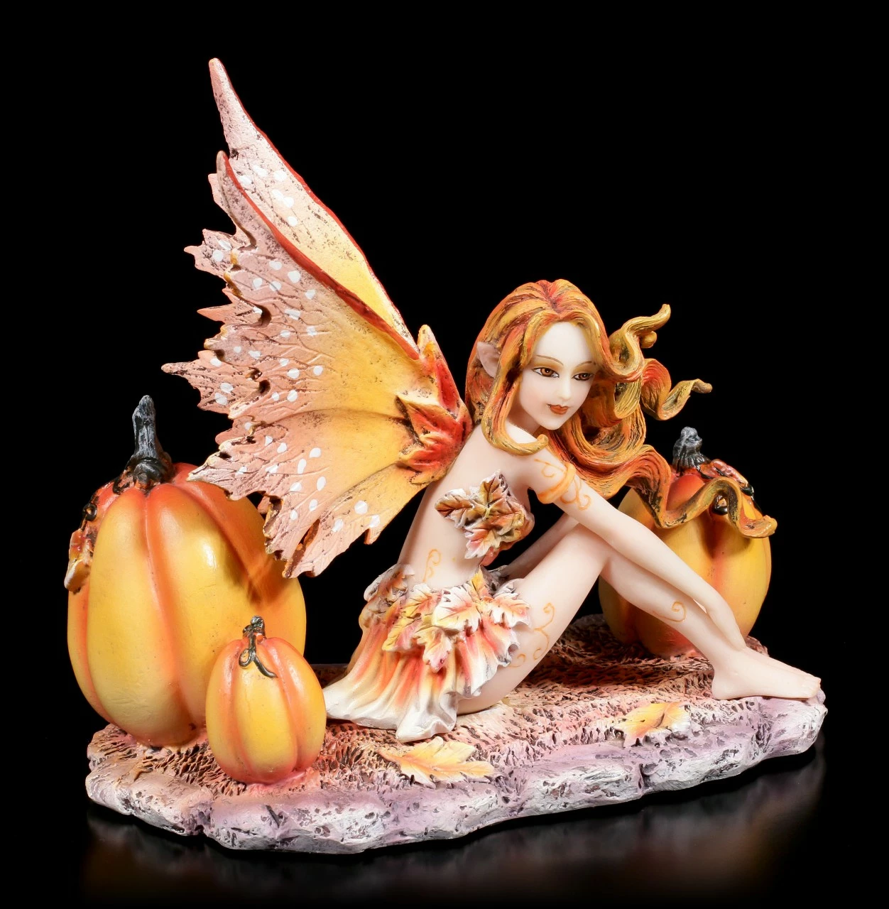 Die Herbst Elfe Autumn Fae von Amy Brown ist eine wunderbare Ergänzung Ihrer Sammlung. Die in orange und rot Tönen gehaltene Elfe wurde liebevoll handbemalt. Die kleine Herbstelfe hat es sich zwischen den Kürbissen bequem gemacht und lauscht den Blättern im Wind.