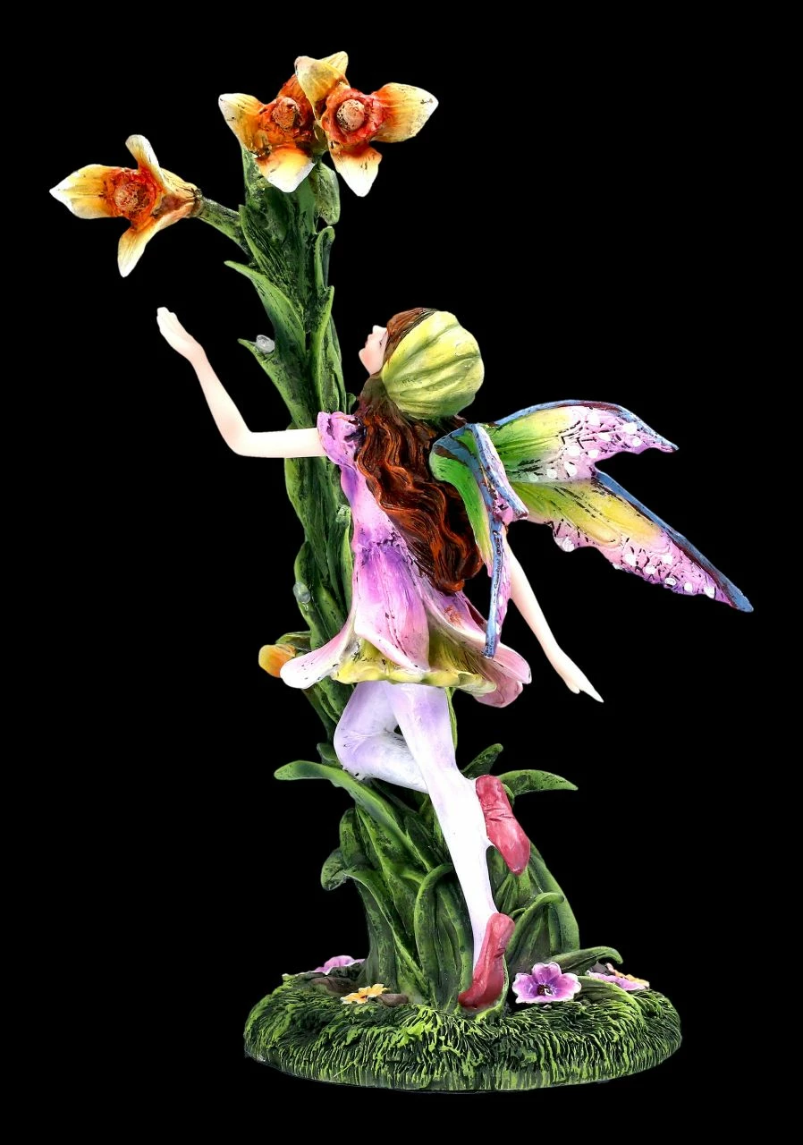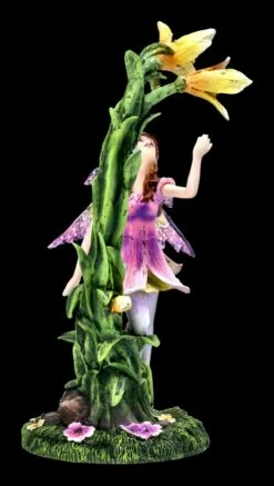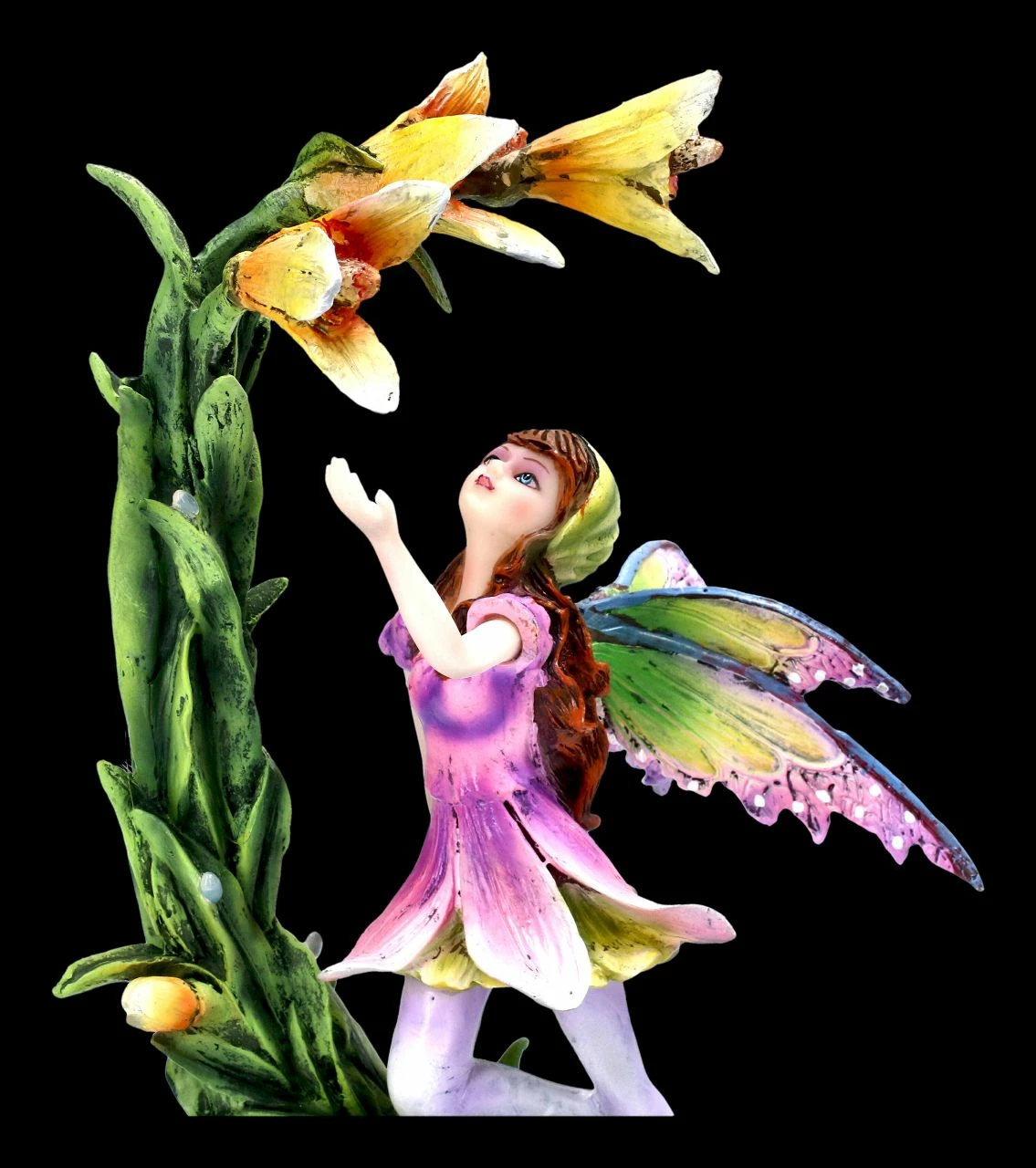 Na klar, natürlich lieben auch Elfenkinder Süßes! Ab und zu möchte auch eine kleine Elfe naschen und so stellt sich Beeny unter die schönen Blüten und sammelt mit ihren Händen den Nektar ein. Die niedliche Elfe aus liebevoll handbemaltem Kunststein (Polyresin) stützt sich mit einem Knie am Pflanzenstiel ab, um besser an die Blüten ranzukommen. Die hübschen Flügel der kleinen Elfe Beeny passen in ihren Grün- und Goldtönen mit pinkfarbenen Spitzen perfekt zu ihrem bunten Blütenkleid und den roten Schuhen und sind zum Stecken. Die Elfen-Figur ist 22 cm hoch, 15 cm breit und 14 cm tief und ein wirklich süßes Geschenk für alle Naschkatzen und Elfenfreunde.