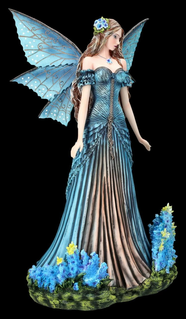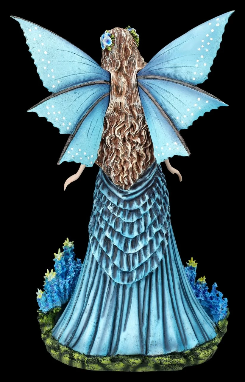 Der Duft von Lavendel beruhigt und erfrischt zugleich. Viele lieben ihn aber auch wegen der zahlreichen blauen Blüten über silbrig glänzender Stengel und Blätter. Wer Lavendel liebt, wird von der betörenden Lavendel-Fee als Geschenk mit Sicherheit begeistert sein. In ihrem traumhaft schönen Kleid in den herrlichen Farben eines Lavendelbusches steht sie zwischen Lavendelblüten auf dem grünen Boden. Ihre in langen Wellen fallenden Haare hat die Lavendel-Fee ebenfalls mit Lavendelblüten geschmückt. Bis zu ihrem sanften Gesichtsausdruck, dem wunderschönen langen Kleid und den herrlichen blauen Flügeln ist sie wunderbar detailreich aus hochwertigem Kunststein (Polyresin) gefertigt und wurde zart und mit viel Liebe von Hand bemalt. Die schönen Flügel der beeindruckenden, 43 cm hohen, 27,5 cm breiten und 20,5 cm tiefen Elfen-Figur sind zum Stecken. Ob die Lavendel-Fee als effektvoller Blickfang am Eingang die Besucher begrüßt, oder zwischen hohen zarten Zimmerpflanzen ihren Platz findet, sie wird jeden Platz veredeln.