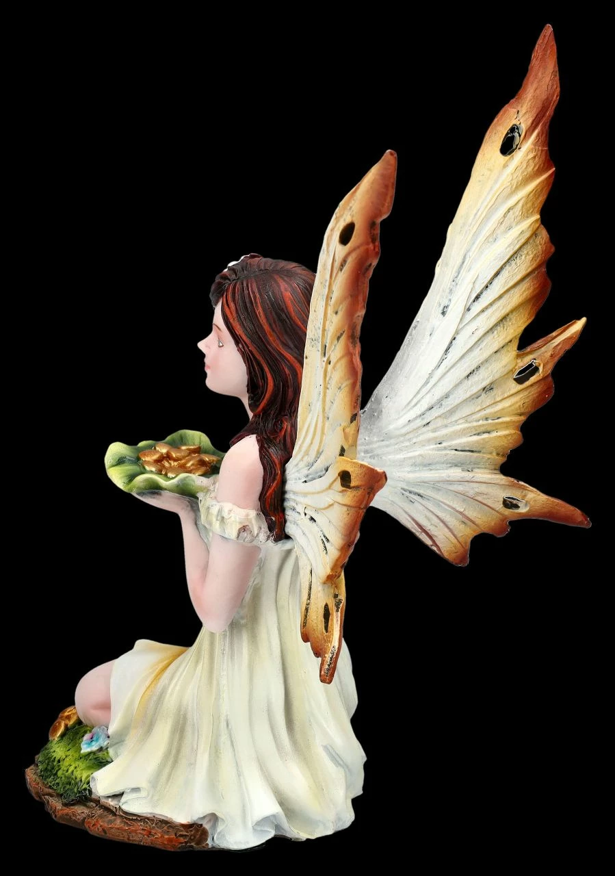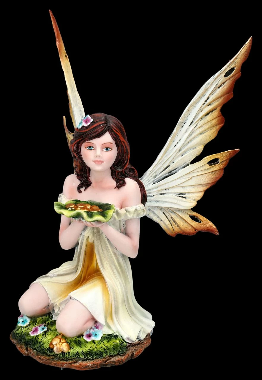 Neuen Job angetreten, oder ist eine wichtige Anschaffung geplant? Dann ist die niedliche Elfe Bloei doch ein perfektes Geschenk für alle, denen Sie Glück wünschen möchten. Auf einer Blütenwiese kniet die niedliche Elfe Bloei und präsentiert ein mit Münzen befülltes Glückskleeblatt. In ihrem hübschen Kleid und mit den großen filigranen Flügeln ist sie doch ein ganz bezaubernder Glücksbote und schaut absolut niedlich aus. Die Flügel der 17 cm hohen, 11 cm breiten und 11 cm tiefen Elfenfigur aus liebevoll handbemaltem Kunststein (Polyresin) sind zum Stecken. Eine zauberhafte Elfe, die nicht nur Sammlern große Freude bereitet.