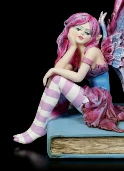 Eine Welt voll Fantasie verbirgt sich zwischen den Zeilen eines guten Buches. Die kleine Lila Elfe von Amy Brown weiß ein gutes Buch zu schätzen. Sie hat sich ein besonders spannendes herausgesucht und als es am Abend zu dunkel wird, schlägt sie es zu und setzt sich auf den Einband. Ganz gedankenverloren denkt sie über das Gelesene nach. Die hübsche handbemalte Elfe aus Kunststein (Polyresin) wird in einer passenden Geschenkbox geliefert.