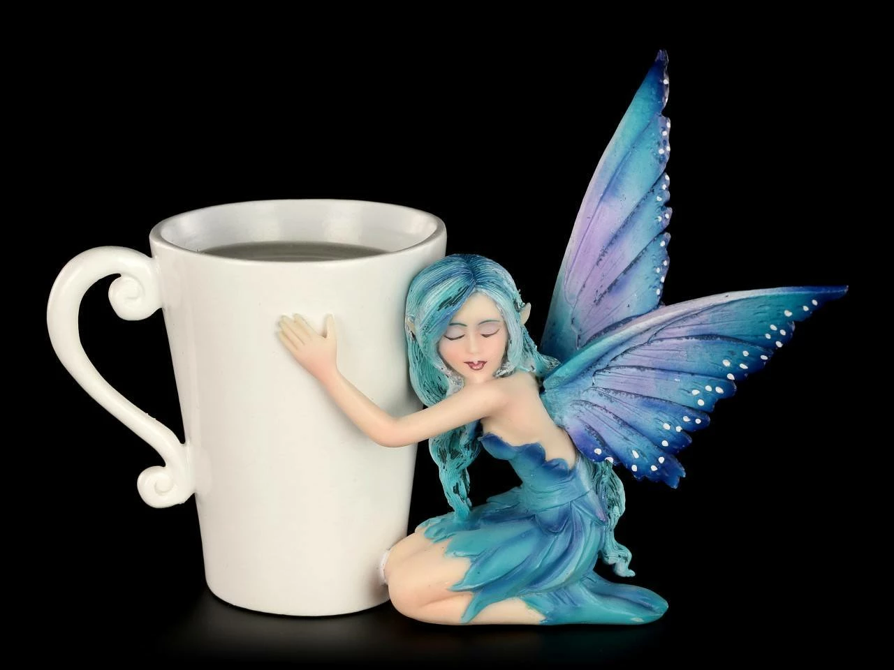 Die kleine Elfe wÀrmt sich an einer warmen Tasse. Diese Elfenfigur ist ein wunderschönes Mitglied einer Elfen Sammlung und ein liebevolles Geschenk an einen Elfen Freund.