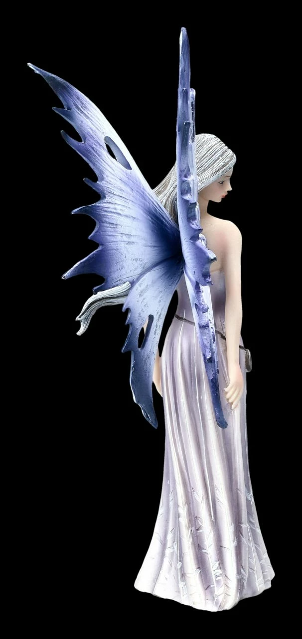 Zart und verträumt schaut die Elfe Dreama zur Seite. Die Mondsichel am Gürtel ihres zart lilafarbenen Kleides beiweist, dass sie zur Gefolgschaft der Mondgöttin gehört. Die wunderschöne Elfenfigur Dreama mit den blau und lila farbenen Flügeln ist aus liebevoll handbemaltem Kunststein (Polyresin) gefertigt. Sie ist 24,0 cm hoch, 7,5 cm breit und 9,0 cm tief und freut sich darauf, in einer romantischen Ecke Ihrer Wohnung ein neues Zuhause zu finden.
