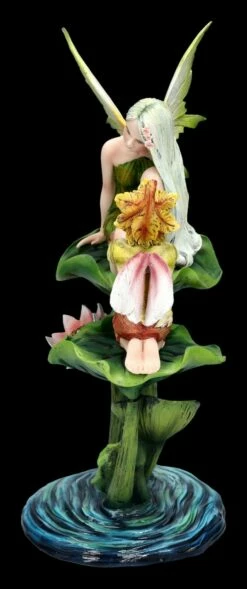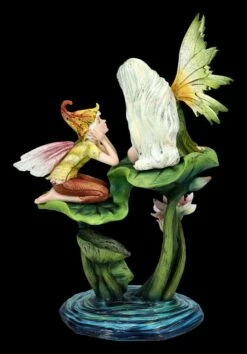 Völlig gebannt hängt der kleine Darius an den Lippen der schönen Elfe Fiona. Welche Geheimnisse werden da verraten? Oder ist es etwa an der Zeit Darius darüber aufzuklären, was einmal alles so im Leben von ihm erwartet wird? Fiona und Darius sitzen völlig ins Gespräch vertieft auf einem großen Lotusblatt im Seerosenteich und lassen sich ganz offensichtlich von niemandem stören. Jeder der die Welt der Fabelwesen liebt, wird von diesen beiden begeistert sein. Die hübsche Elfen-Figur aus Kunststein (Polyresin) ist 28,5 cm hoch, 17 cm breit und 12 cm tief und mit viel Liebe zum Detail handbemalt. Die zarten Flügel sind zum Stecken. Fiona und Darius freuen sich sicherlich über einen kleinen geschützten Platz auf der Blumen- oder Fensterbank, wo sie ihr Gespräch ungehindert fortsetzten können. Jeder Elfen-Sammler wird begeistert sein, wenn er diese niedliche Elfen-Figur als Geschenk bekommt.