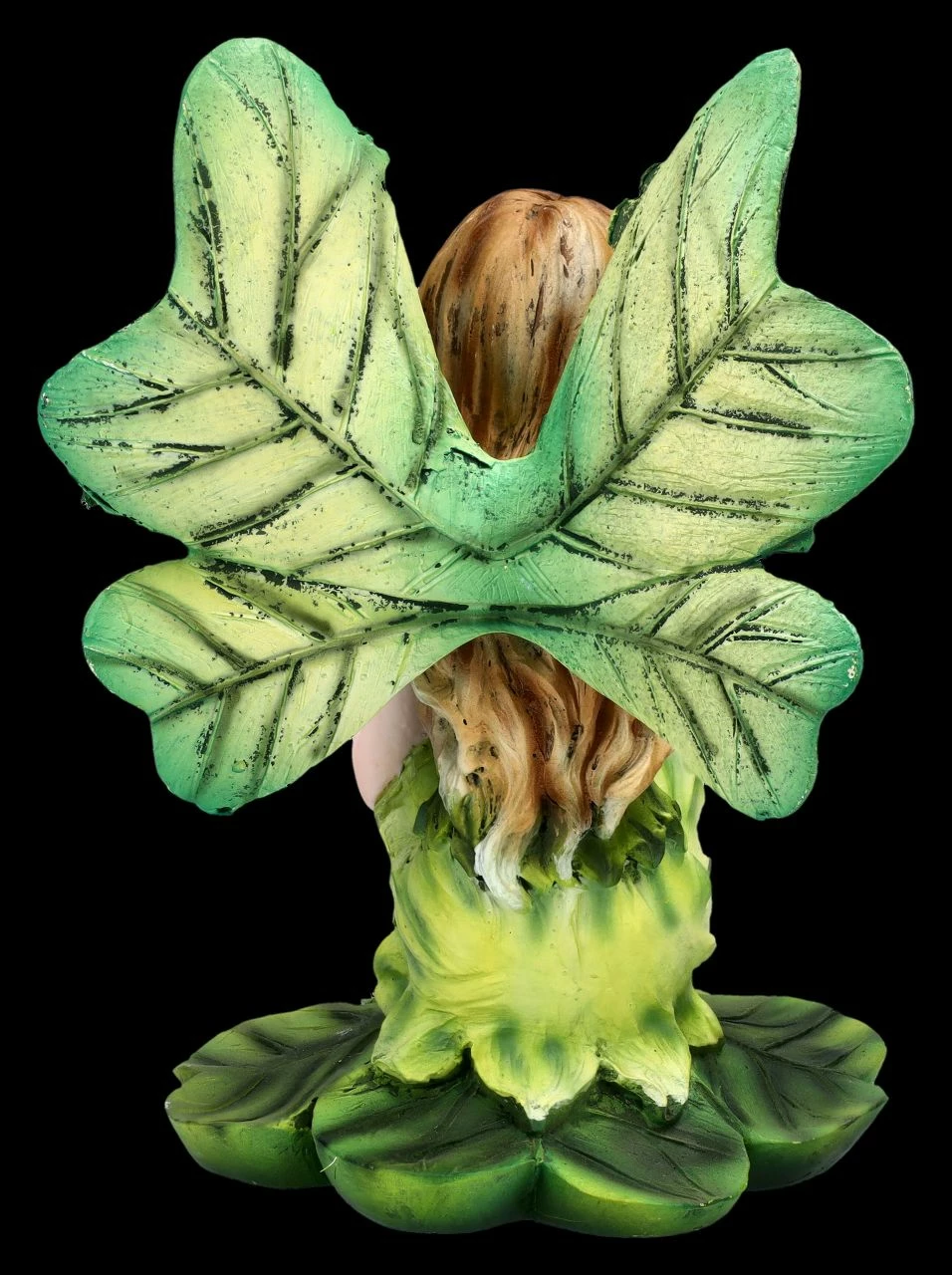 Auf einem vierblättrigen Kleeblatt sitzt verträumt die niedliche Glücksfee Lindir. Mit ihren Kleeblatt-Flügeln und dem Blätterkleid ist sie doch ein ganz bezaubernder Glücksbote und mit ihren grünen Stiefelchen schaut sie doch absolut niedlich aus. Die Flügel der 14 cm hohen, 11 cm breiten und 11 cm tiefen Elfenfigur aus liebevoll handbemaltem Kunststein (Polyresin) sind zum Stecken. Glück ist relativ und da es für jeden eine andere Bedeutung hat, gibt es zahlreiche Symbole. Ein vierblättriges Kleeblatt ist aber für viele ein wichtiges Glückssymbol – und das sicher nicht nur zu Neujahr. Damit ist die Glücksfee Lindir doch ein perfektes Geschenk für alle, denen Sie Glück wünschen möchten.