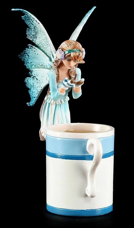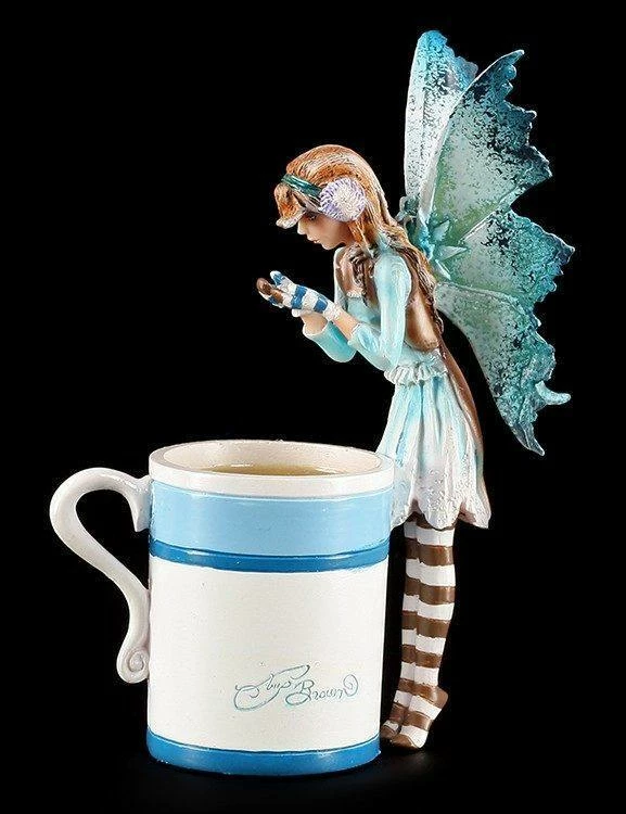 Die kleine Elfe nascht heimlich süßen Kakao aus einer Tasse. Sie liebt das warme süße Getränk. Die Figur von Amy Brown wurde liebevoll handbemalt.