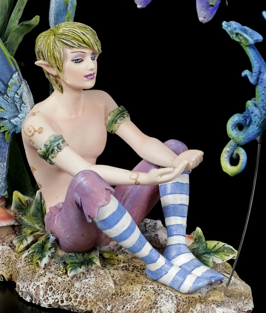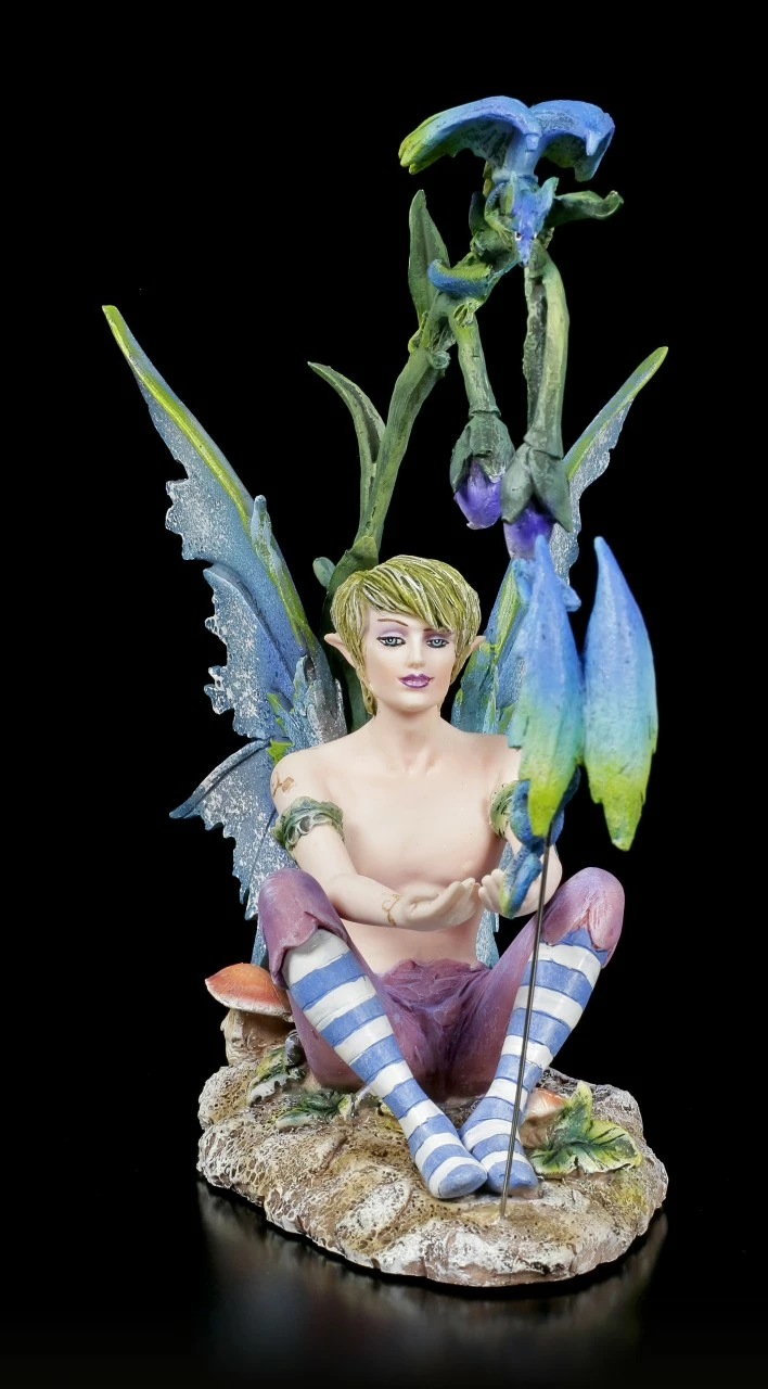 Karim, der Elfenjunge hat im Wald einen neuen Freund gefunden. Der kleine Drache flattert aufgeregt vor ihm auf und nieder und spielt vor lauter Übermut mit den Blüten einer prachtvollen Blume. Das handbemalte Duo aus Kunststein (Polyresin) ist von der Künstlerin Amy Brown in gewohnter, farbenfroher Pracht gestaltet worden.