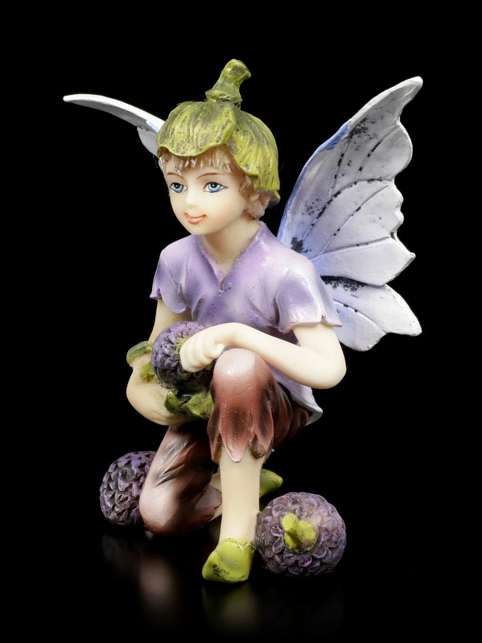 Miamiel, der kleine Elfenjung, wurde von seiner Mama zum Früchte sammeln geschickt. Die süße handbemalte Kunststein Figur sollte in keiner Sammlung fehlen.