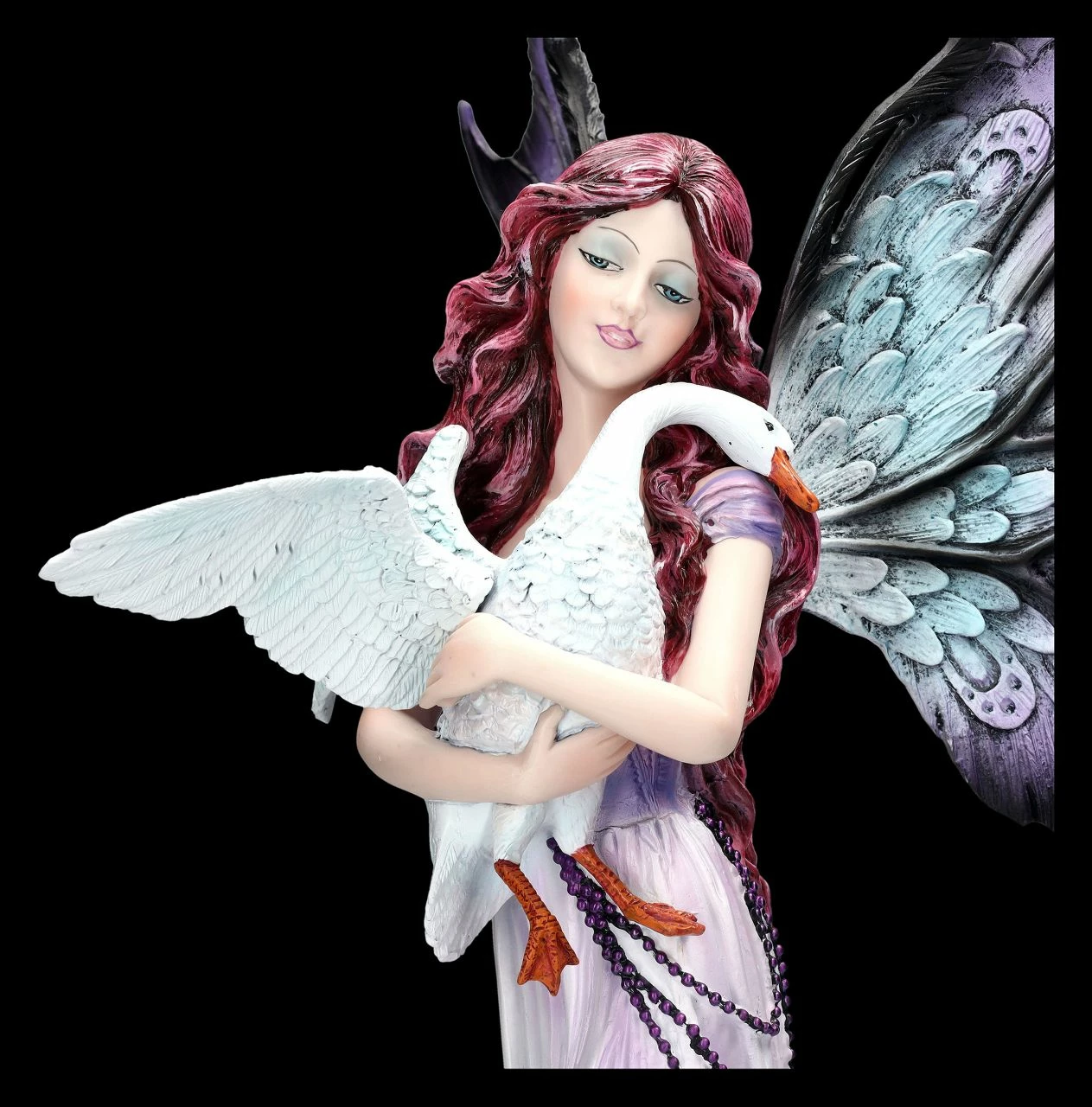 Liebevolle Elfenfigur kĂŒmmert sich um Schwan