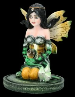 Wie auch ihre Freundin Kristana aus unserem Shop, die im Gegensatz zu ihr eine Vorliebe für die Farbe Lila hat, möchte anscheinend Kirana versuchen, die Kristalle auf dem Boden mit Hilfe der magischen Kugel in ihren Händen wachsen zu lassen. Die Elfe Kirana mit den langen schwarzen Haaren und den Flügeln wie Schmetterlingen, sieht in ihrem schwarz-grünen Kleidchen mit den langen schwarz-grün geringelten Handschuhen einfach bezaubernd aus. Die niedliche kleine Elfen-Figur ist aus liebevoll handbemaltem Kunststein (Polyresin) und 9 cm hoch, 7 cm breit und 7cm tief. Vielleicht gleich gemeinsam mit ihrer Freundin Kristana ist sie nicht nur eine bezaubernde Deko, sondern auch ein perfektes kleines Geschenk für alle, die sich gerne mit mystischen Elfen umgeben.