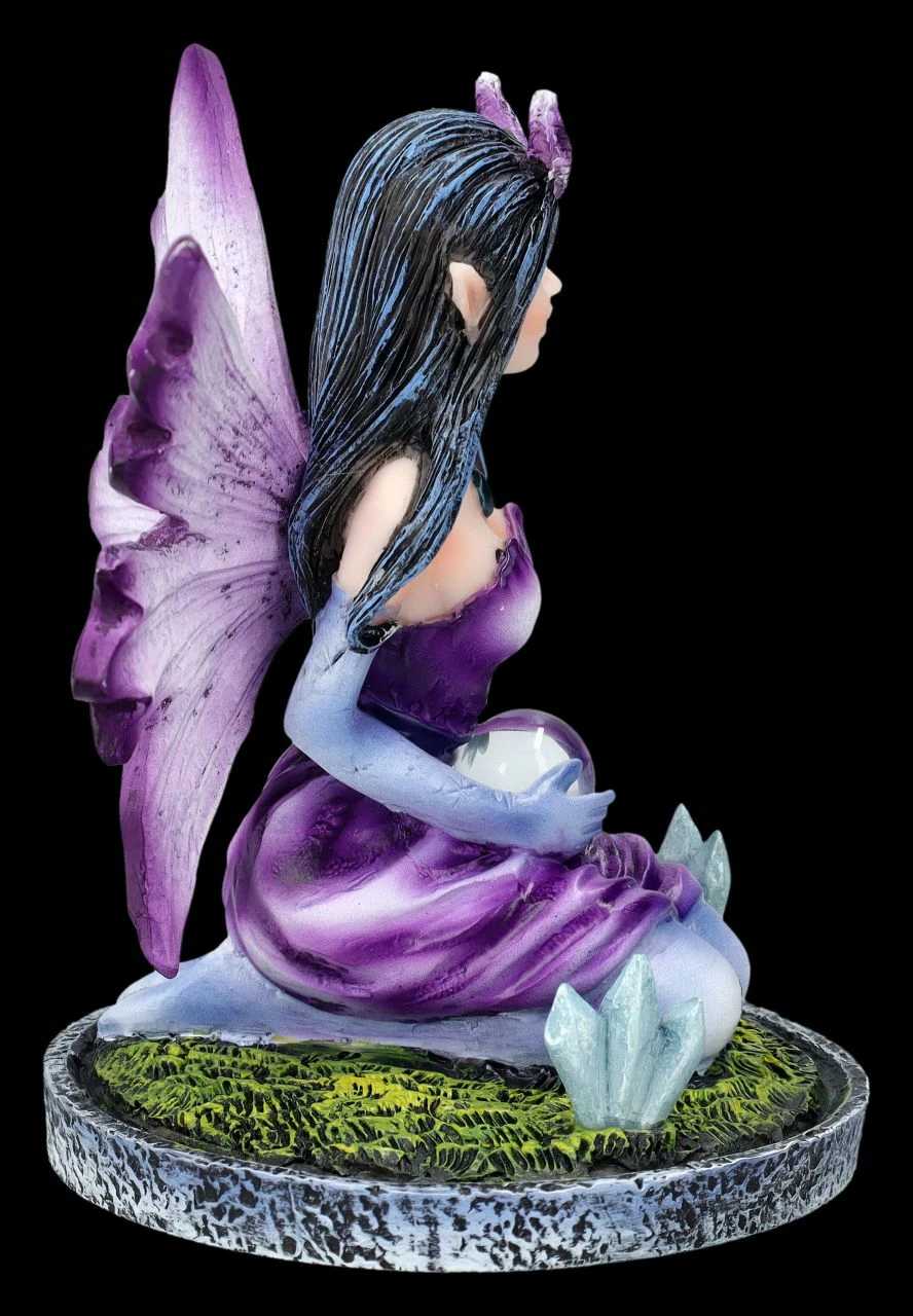 Mit ihrer Zauberkugel in der Hand kniet die kleine Kristana zwischen den Kristallen auf dem Boden. Was hat die Elfe in dem lilafarbenen Kleidchen, den lilafarenen Flügeln und dem ebenfalls lilafarbenen Kopfschmuck nur vor? Vielleicht möchte sie mit der magischen Kugel die Kristalle in unendliche Höhen wachsen lassen? Die niedliche kleine Elfe Kristana mit den Kristallen ist einfach bezaubernd. Die hübsche Elfen-Figur ist aus liebevoll handbemaltem Kunststein (Polyresin) und 9 cm hoch, 7 cm breit und 7cm tief. Sie ist nicht nur eine hübsche Deko, sondern – vielleicht gleich gemeinsam mit ihrer Freundin Kirana aus unserem Shop – auch ein perfektes kleines Geschenk für alle, die sich gerne mit mystischen Elfen umgeben.