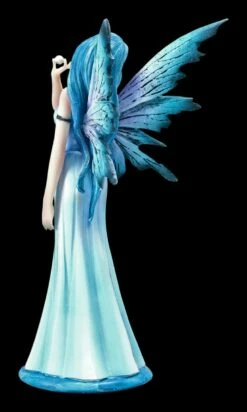 Mit der Perle in ihrer Hand zeigt die Elfe Luna, dass sie bei Vollmond losgeflogen ist, um auf Ihrer Fensterbank zu landen. Mit ihren großen, zart blauen Flügel mit lilafarbenen Einsprenkel und in ein langes blaues Mondkleid gehüllt, ist die Elfe Luna im Mondlicht fast nicht zu sehen, so zart ist sie. Luna ist aus detailreich handbemaltem Kunststein (Polyresin) gefertigt. Sie ist 20,0 cm hoch, 9,0 cm breit und 10,0 cm tief und wartet darauf, in Ihr Zuhause eingelassen zu werden. Luna ist auch ein tolles Geschenk für Sammler von Elfenfiguren.