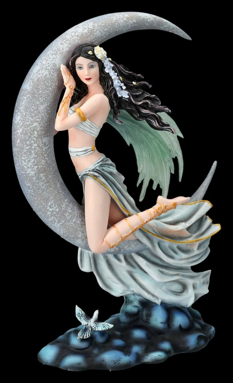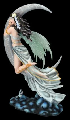 Elfen, Feen und magische Wesen der beliebten amerikanischen Fantasy-Künstlerin Nene Thomas aus Oklahoma City sind nicht nur bei Sammlern sehr beliebt. Sie schafft es immer wieder, die Fantasie eines jeden, der diese wunderschönen magischen Wesen sieht, anzuregen. Was bei dieser leicht bekleideten wunderschönen Elfe, die sich sinnlich an den Mond schmiegt, auch kein Wunder ist. ‚Moon Lullaby‘ nennt Nene Thomas diese zauberhafte Elfe auf dem Mond. Sie ist von den filigranen Flügeln bis zu den zarten Hauttönen wunderbar detailreich aus liebevoll handbemaltem Kunststein (Polyresin) entstanden. Die Flügel der schönen Elfe sind zum Stecken. Die 30,5 cm hohe, 21 cm breite und 10 cm tiefe Elfen Figur mit dem Mond von Nene Thomas wird nicht nur Sammler begeistern. Sie ist auch ein prachtvolles Geschenk, das einen perfekten Platz verdient.