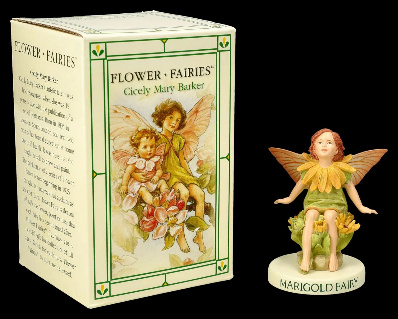 ‚Marigold‘ ist die englische Bezeichnung der Ringelblumen. Und wie eine kleine Ringelblume, die sich der Sonne entgegenstreckt, sitzt die kleine Elfe auf dem Podest mit der Bezeichnung ‚Marigold Fairy‘. Die niedliche Ringelblumen Fee aus der Flower Fairies Collection von Cicely Mary Barker ist zwischen all Ihren Pflanzen sicher ein sofortiger Blickfang. Cicely Mary Barker, die 1895 geborene und 1973 gestorbene englische Illustratorin, widmete sich von Kindheit an der fantasievollen Welt der Elfen und Feen. Ihre ‚Flower Fairies‘ mit den zauberhaften Feenbildern, denen die kleinen Elfen nachempfunden sind, begeistern von Anfang an Kinder und auch Erwachsene. Für alle, die Freude an der Natur, an Blumen, Pflanzen und Kräutern haben, ist die 9 cm hohe, 7 cm breite und 6 cm tiefe bezaubernde Ringelblumen Fee aus liebevoll handbemaltem Kunststein (Polyresin) ein perfektes Geschenk und kommt in einem Geschenkkarton. Sammler finden weitere niedliche Flower Fairies in unserem Shop