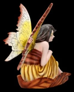 Wenn im Herbst die ersten Blätter von den Bäumen fallen, kann es Dariel kaum erwarten, in den Wald zu laufen. Wenn sie müde ist, setzt sie sich auf eines der herbstlich gefärbten raschelnden Blätter und wartet darauf, ob sie der Wind mit dem Blatt in die Lüfte hebt, oder wenigstens ihr langes schwarzes Haar durcheinanderwirbelt. Ihr gelbes Kleidchen und die zarten filigranen Flügel passen perfekt zu den Herbstfarben. Die niedliche Elfe ist aus liebevoll handbemaltem Kunststein (Polyresin) und 13 cm hoch, 12 cm breit und 10 cm tief. Zwischen Blumen und Pflanzen auf der Blumenbank oder auch in einer Elfenlandschaft – vielleicht gleich gemeinsam mit ihren Elfen-Freundinnen aus unserem Shop – fühlt sich Dariel richtig wohl. Daher ist die bezaubernde Elfe auch ein perfektes Geschenk für Sammler und alle, die gerne von der Welt der Elfen, Feen und Zauberwesen träumen.