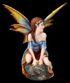 Verträumt sitzt die kleine Herbst Elfe Dawn auf dem noch warmen Felsen. Zwischen den herbstlichen Blättern im Wald wäre sie kaum zu entdecken, daher freut sie sich auf einen schönen Platz zum Beispiel auf einer Blumenbank, damit man sie auch bewundern kann. Die niedliche Elfenfigur ist aus liebevoll handbemaltem Kunststein (Polyresin). Ihre in den herbstlichen Farben gehaltenen Flügel sind zum Stecken und passen perfekt zu ihrem Kleidchen. Die 16,5 cm hohe, 9 cm breite und 11 cm tiefe Elfe Dawn ist auch ein perfektes Geschenk für alle, die sich gerne mit Elfen und Feenwesen umgeben.