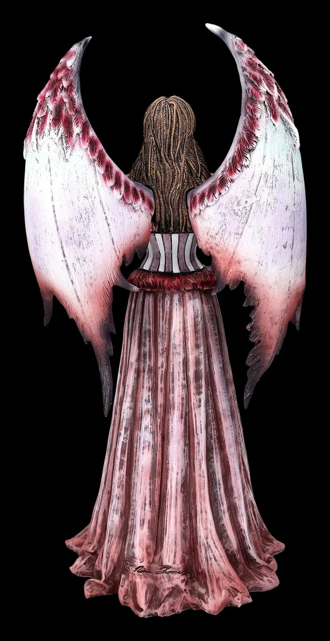 Die meisten von uns stellen sich Engel mit schneeweißem Gewand und Gefieder vor, nicht so die Fantasy-Künstlerin Amy Brown. Sie sagt von sich selbst: „Ich hoffe, Bilder zu schaffen, die andere zum Schaffen inspirieren, Menschen glücklich machen und allgemein ihre Stimmung aufhellen“.Und weiter sagt sie, dass wir alle an ein wenig Magie glauben sollen, auch wenn es nur für kurze Zeit ist. Diese außergewöhniche Elfe hat Amie Brown zum Schutzengel des Drachenbabys gemacht, das der wunderschöne Engel vorsichtig in Händen hält. Mit ‚Adoration Fairy‘ kann jeder seine Fantasie spielen lassen, wenn er diese mystisch schöne Engel mit den großen farblich zu ihrem schönen Gewand passenden Flügeln erblickt. Die fantasievolle Engel-Figur von Amy Brown mit den vielen Details und den tollen Farben wurde aus liebevoll handbemaltem Kunststein (Polyresin) geschaffen. Mit der Höhe von 35 cm, der Breite von 19 cm und der Tiefe von 14 cm wird der herrliche und sicher nicht nur von dem Drachenbaby angebetete Engel von allen bewundert werden. Nicht nur für Elfen-Sammler, sondern für alle die von der Welt der Drachen und Elfen fasziniert sind, ist diese ‚Adoration Fairy von Amy Brown ein perfektes Geschenk. Die schönen großen Flügel sind zum Stecken