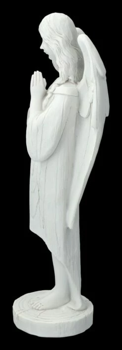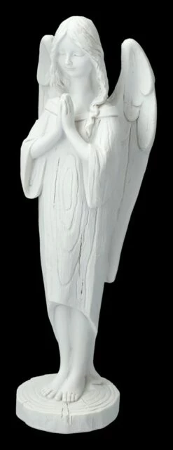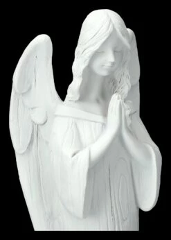 In sein Gebet versunken ist dieser klare, wie geschnitzt aussehende weiße Engel, der mit vielen anderen Schutzengeln in unserem Shop gelandet ist. Die 25 cm hohe, 7,5 cm breite und 6,5 cm tiefe Engelfigur wurde liebevoll aus handbemaltem Kunststein (Polyresin) gefertigt. Eine wunderbare Gelegenheit, seine Engelschar zu erweitern oder lieben Freunden einen Schutzengel zum Geschenk zu machen.