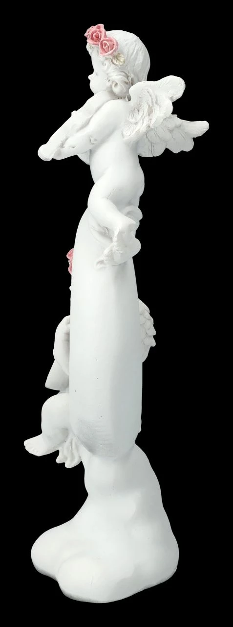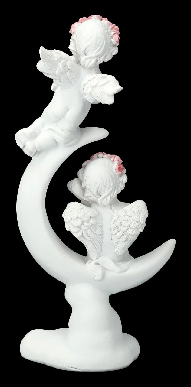 Mit der kleinen Nachtmusik läuten die beiden süßen Putten mit ihren Instrumenten die Nachtstunden ein. Wer kann sie hören? Die niedlichen musizierenden Putten auf der Mondsichel gehören zu der großen Engelschar, die in unserem Shop gelandet ist. Die romantische Deko aus liebevoll handbemaltem Kunststein (Polyresin) ist 18,5 cm hoch, 8 cm breit und 5 cm tief. Nicht nur für jeden Hochzeitstisch sind die kleinen Putten auf dem Mond eine tolle Deko, sie sind auch ein perfektes Geschenk für den ganz persönlichen Engel.