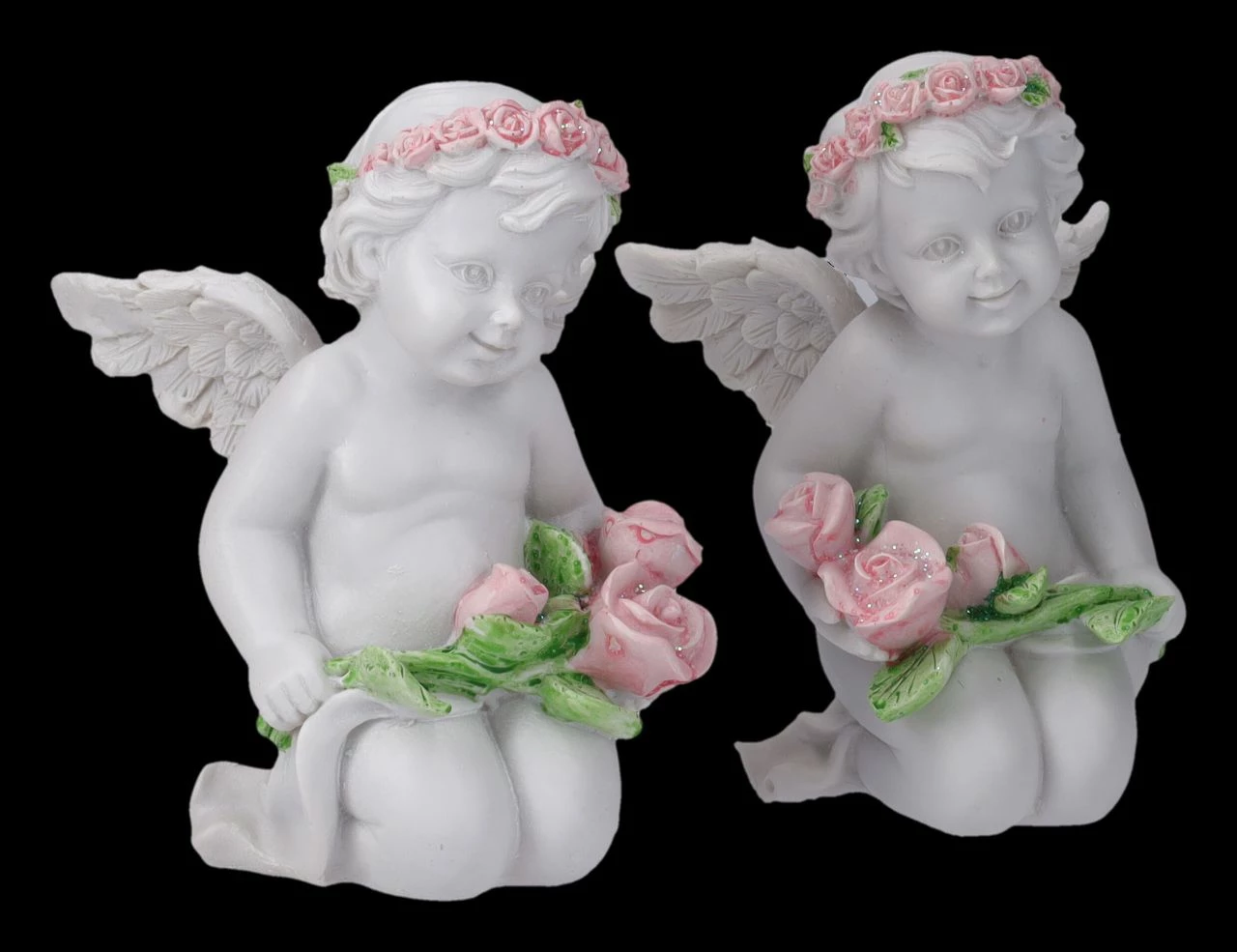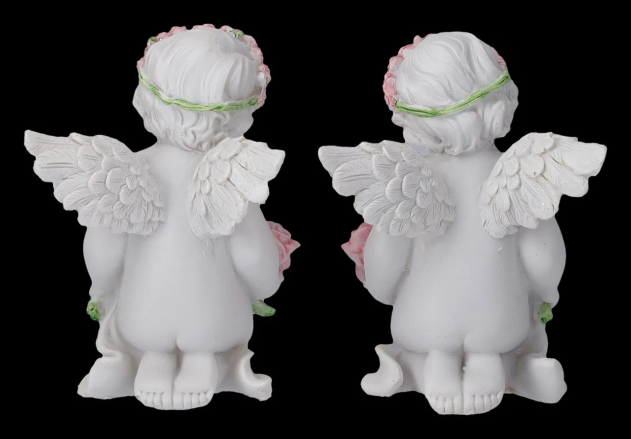 Sind diese beiden niedlichen Engel-Figuren im 2er Set nicht die perfekte Deko für eine Hochzeitstafel? Als Liebesengel wurden die kleinen Putten bereits in der Antike bezeichnet. Das passt perfekt auf diese beiden zauberhaften, mit rosa Rosen bekränzten Engelchen. Auch in ihren Händen halten die niedlichen Putten eine Girlande mit rosa Rosen Die bezaubernden Engel-Figuren sind aus liebevoll handbemaltem Kunststein (Polyresin) und je 11,5 cm hoch,je 8 cm breit und je 8,5 cm tief. Sie sind aber auch als kleine Liebesgabe ein bezauberndes Geschenk.