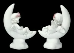 Auch Engelchen werden mal mĂŒde, vor allem, wenn sie so ausgiebig feiern…. Gemeinsam mit einer groĂen Engelschar sind die kleinen Putten in unserem Shop gelandet und haben zum Relaxen auf den Mondsicheln Platz genommen. Die kleinen Putten auf den Monden wurden aus liebevoll handbemaltem Kunststein (Polyresin) gefertigt und sind je 10 cm hoch, 8 cm breit und je 4 cm tief. FĂŒr jeden Hochzeitstisch ist dieses niedliche 2-er Set eine tolle Deko, sie zieren aber auch perfekt jedes Geschenk.