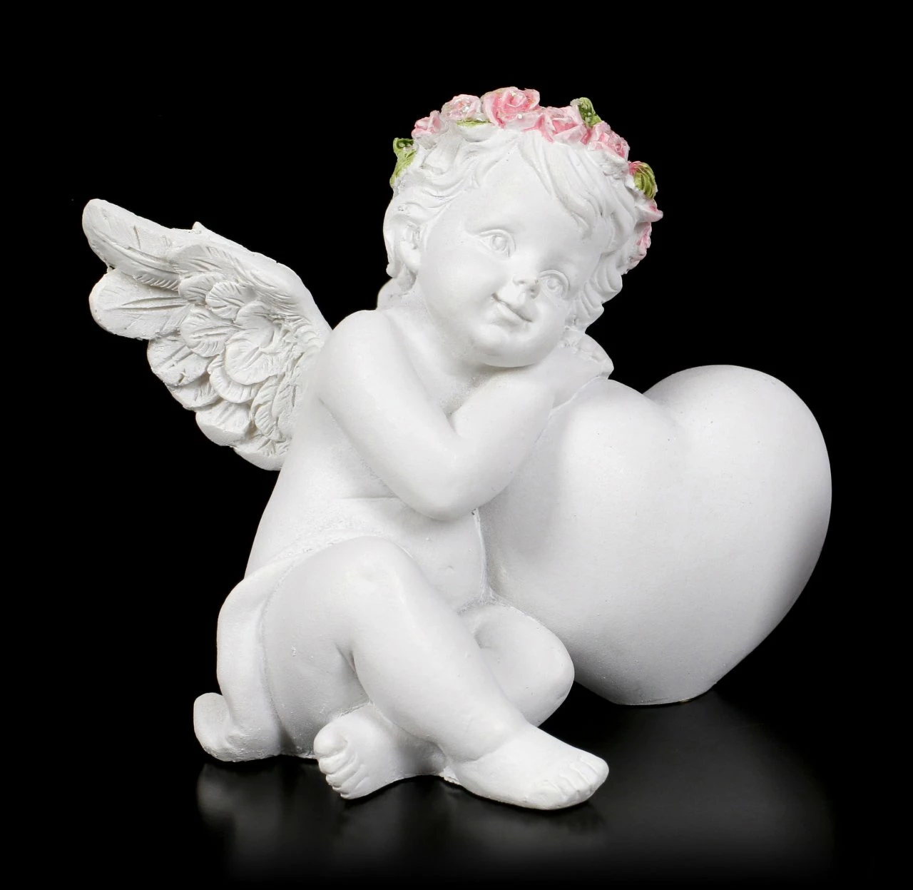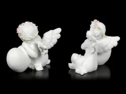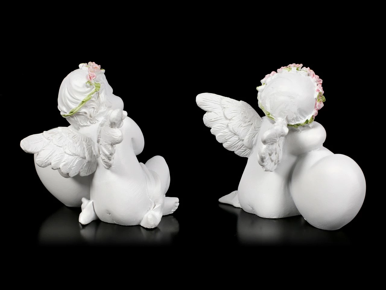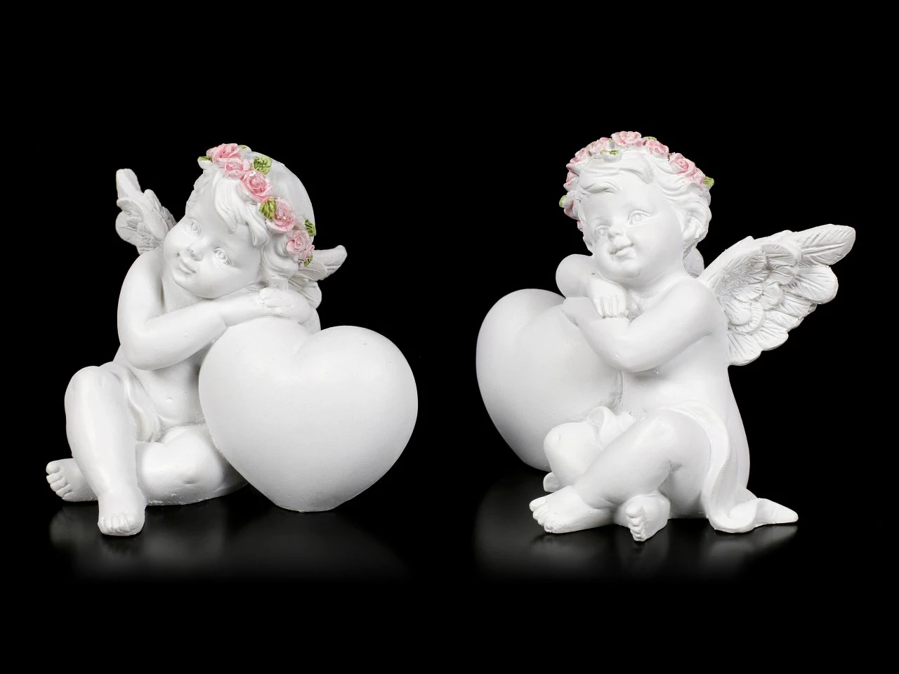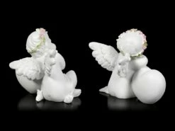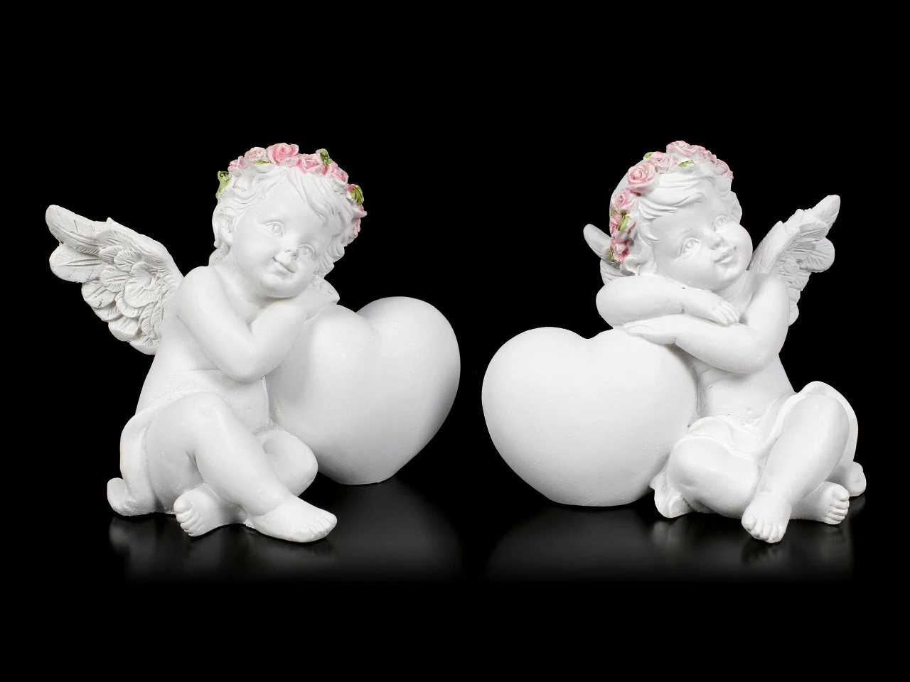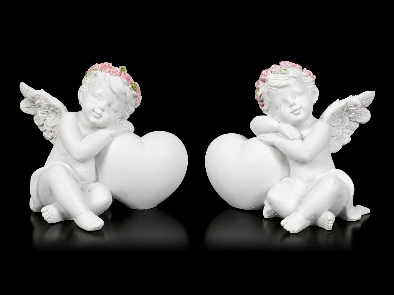 Das herzige Engel 2er Set aus handbemaltem Kunststein (Polyresin) ist eine wunderbare Tischdeko zu einer Hochzeit oder auch ein süßes Geschenk für einen lieben Menschen. Die beiden Engelchen kuscheln mit einem Herz und scheinen in Gedanken vertieft zu sein.